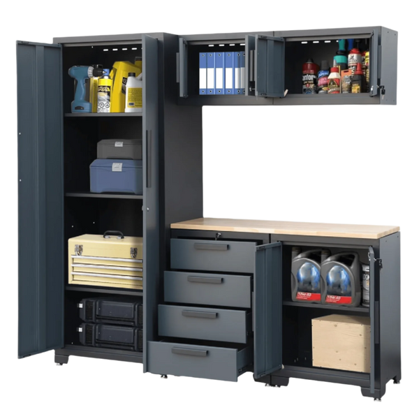7' Garage Storage Cabinets with Workbench (20 Drawers)