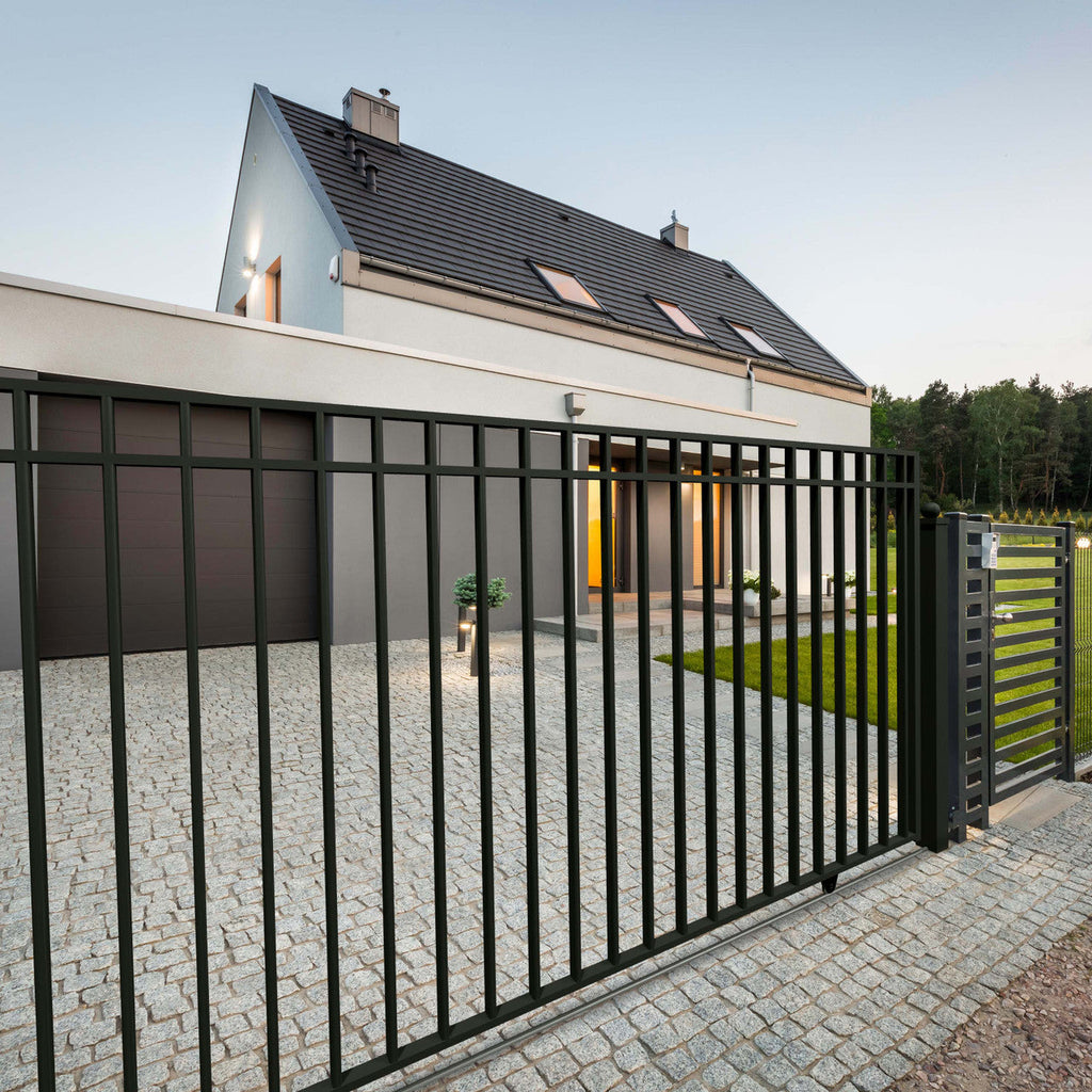 The Sliding Driveway Gate captures the classic magnificence of historic wrought iron gates at an affordable price. One of the most dramatic changes you can make to the exterior of your home is adding an electronic opening gate that increases home security and enhances the aesthetics of your property.