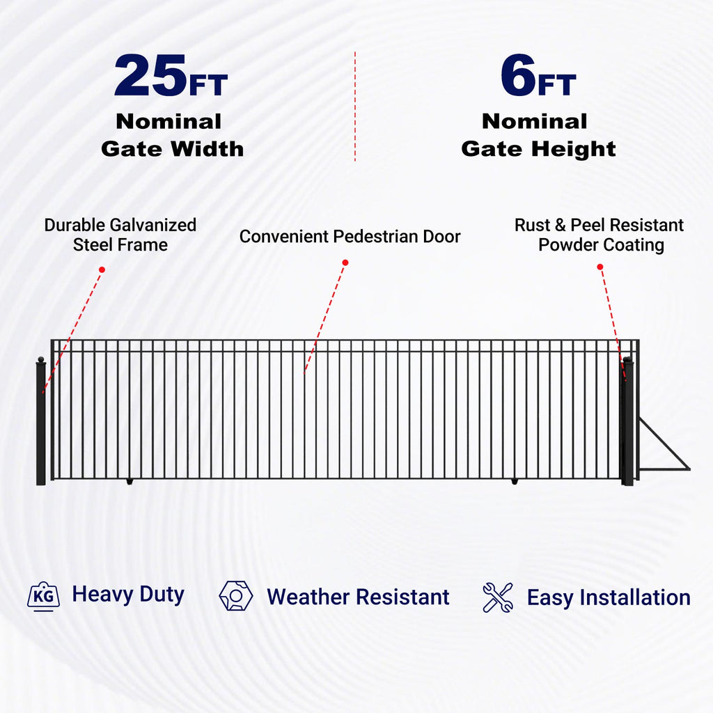 25x6 ft Steel Sliding Driveway Gate - MADRID Style