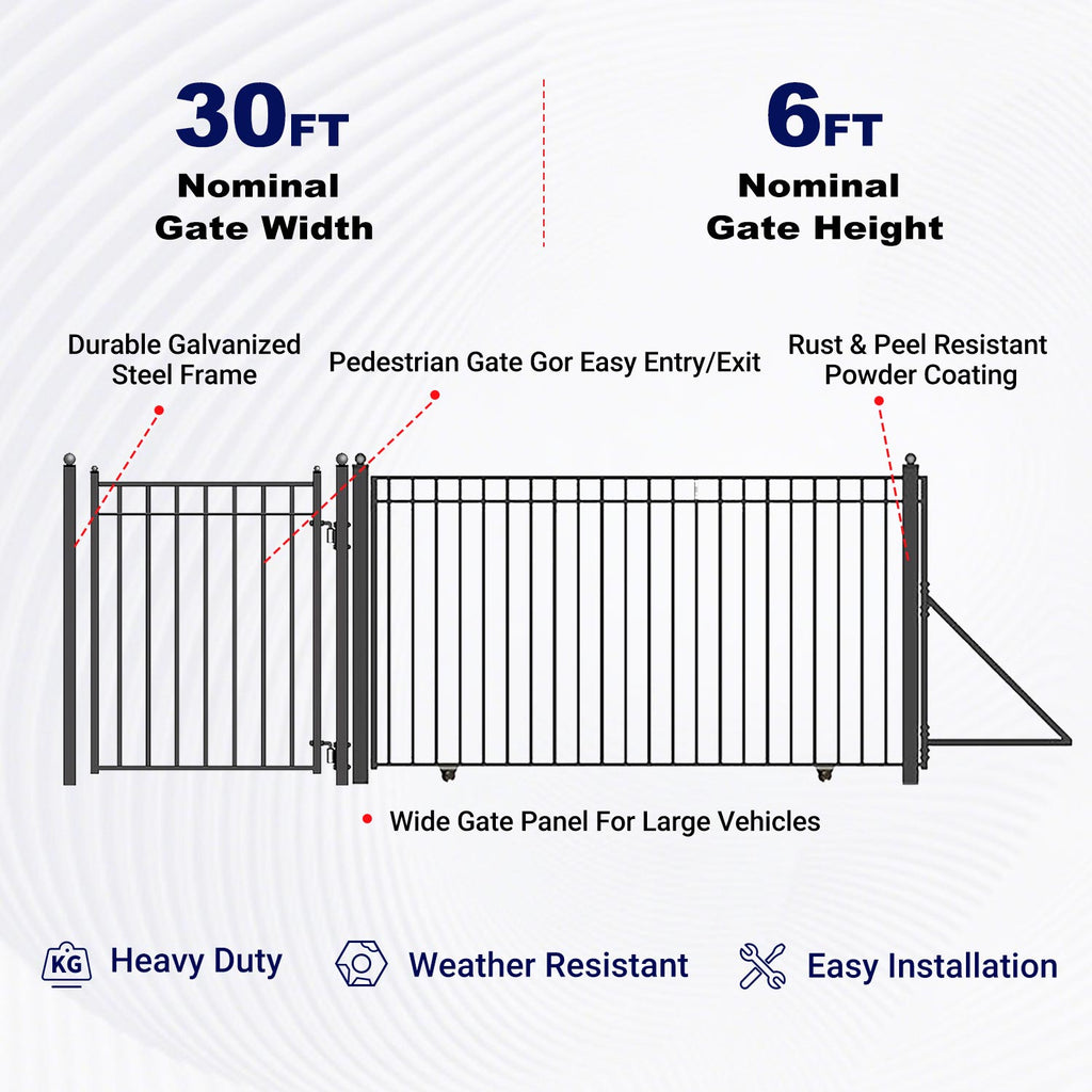 - Versatile: Can be used for entryways, backyards, pool areas, storage facilities, farms, commercial, or residential properties needing a wide gate enclosure; install as a complete set or separately on your property.
