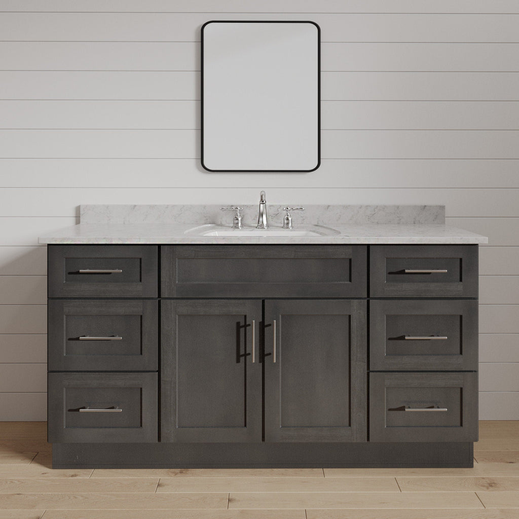 These Gray Stained Shaker bathroom vanities are perfect for your bathroom remodel or new construction. We all know the Gray Stained shaker doors keep increasing in popularity with no end in sight. They are here to stay.