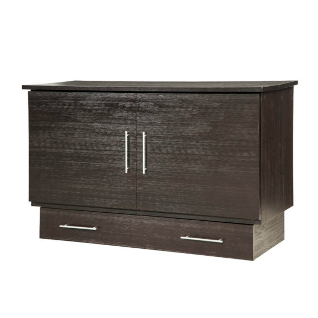 Experience the perfect blend of style and functionality with the Creden-ZzZ Coffee Cabinet Bed – 503-20, the original queen cabinet bed designed to save space without sacrificing comfort. Featuring a rich, dark roasted brown finish on Poplar veneer and sleek brushed aluminum bar hardware, this space-saving bed offers a clean, contemporary look ideal for home offices, guest rooms, and urban lofts.