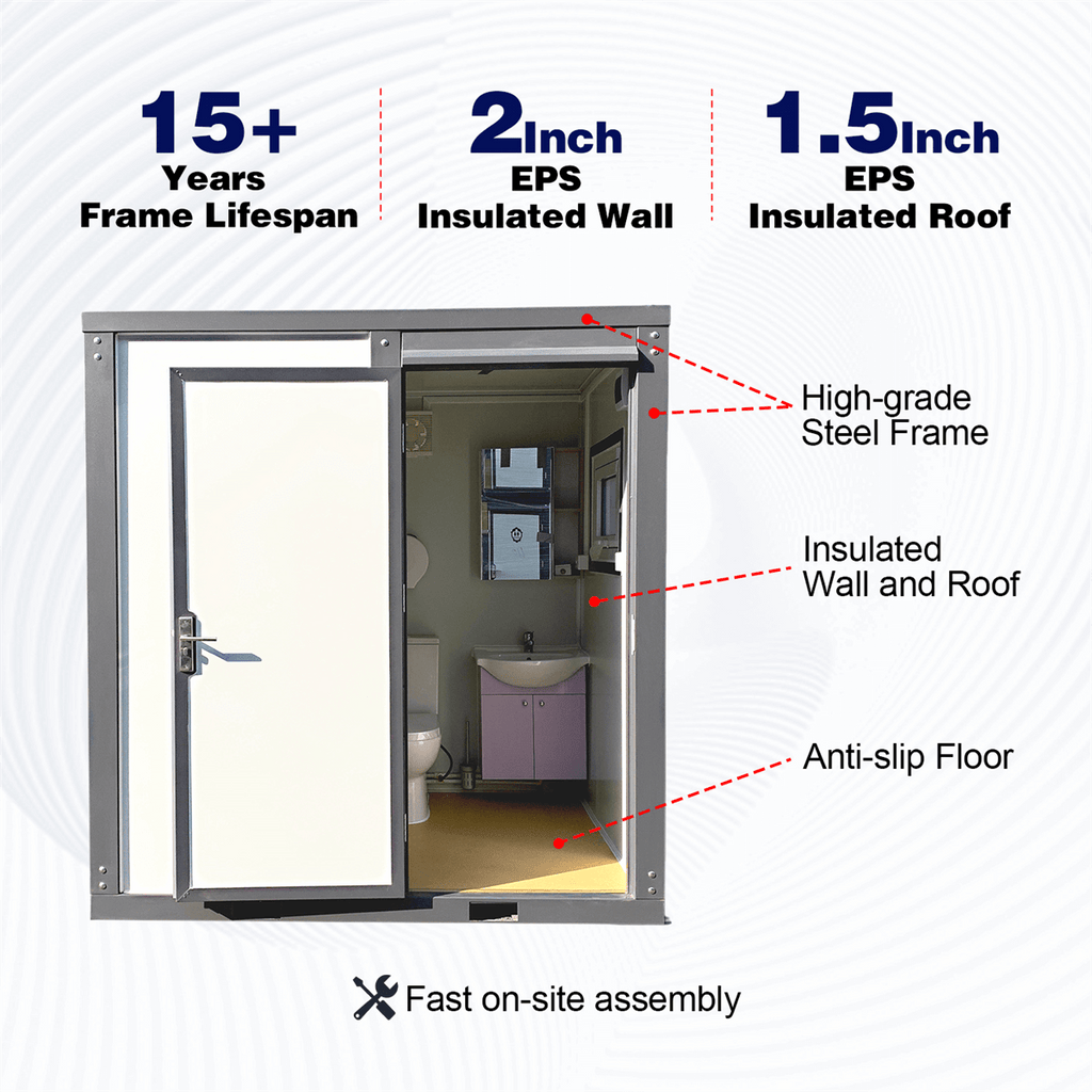 - If used on a construction site, we recommend you connect toilets to the sanitary sewer system and connect water to the pipe system. If not, you may need tanks outside the structure for waste.