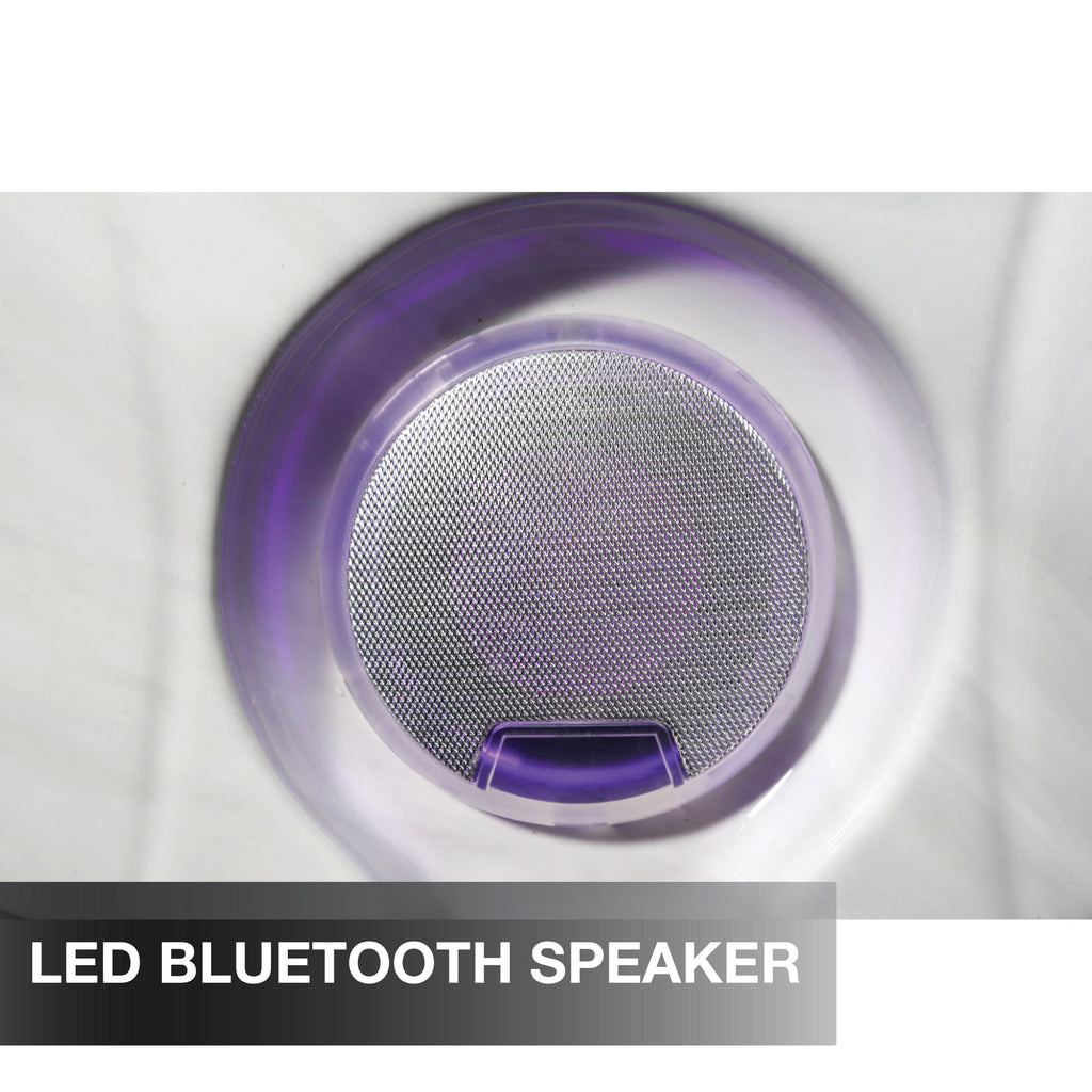 - Features multi-coloured LED mood lighting, Bluetooth audio speakers, waterfall, and a built-in aromatherapy canister