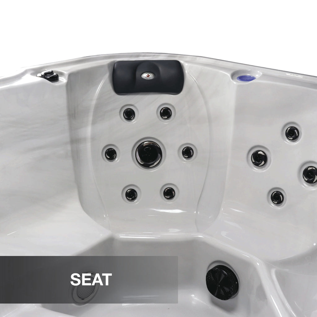 Customizable massage and directional jets in 3 different sizes. Two 16.4 amp, 5 horsepower pumps deliver a strong hydrotherapy massage that will be sure to soothe tired muscles.