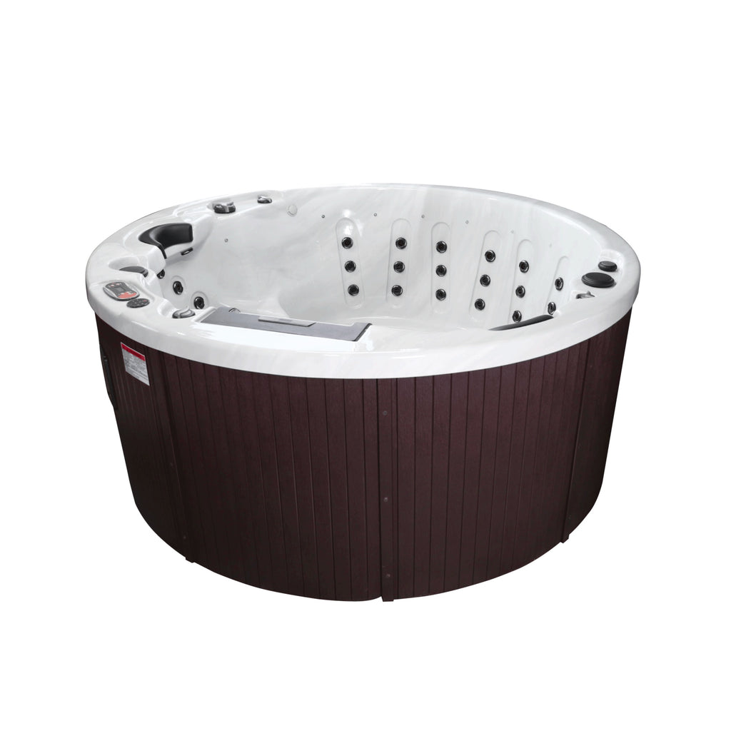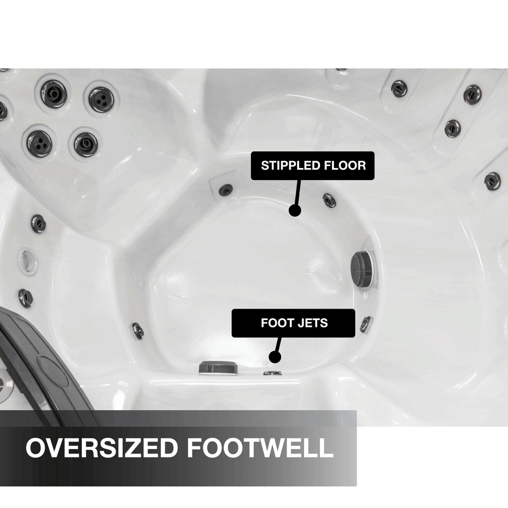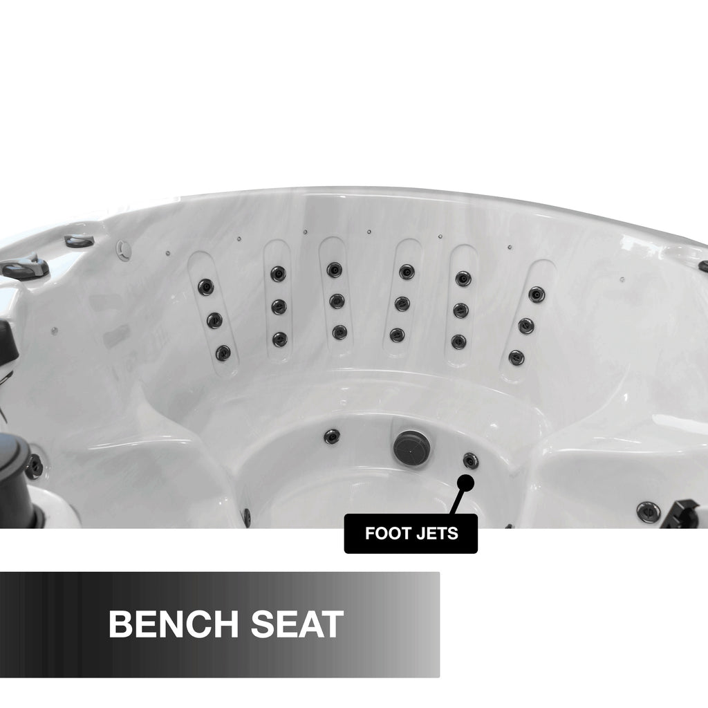 Insulation includes high-density closed cell foam that surrounds the shell, and an infrared-lined insulated cabinet that traps the heat inside the spa
