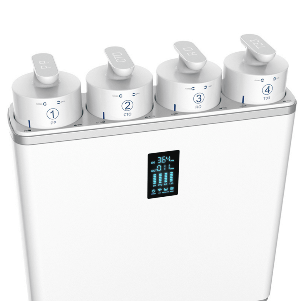 An intuitive touch panel provides real-time feedback on filter life, total dissolved solids, and more.