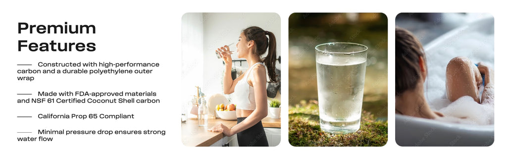 - ✔ Made with FDA-approved materials and NSF 61 Certified Coconut Shell carbon
