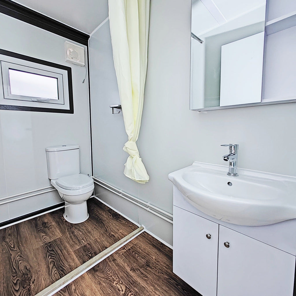 Designed with a built-in toilet, it is convenient for everyone. Compared to solid constitutions, prefab houses are built in a factory and it is compacted as a container size. This Tiny House does not come with furniture, fixtures or fittings such as tables, chairs, curtains, carpets, kitchen splashbacks or appliances. Any content shown is not included.