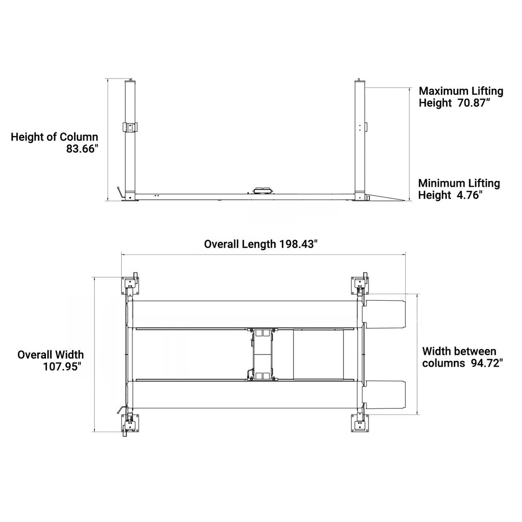 *Concrete thickness must be at least 3.93” (100 MM) with a 3000 PSI rating. Failure to install this lift on the proper concrete could result in serious injury or death! It is the customer’s responsibility to verify concrete thickness and strength before purchase and installation.