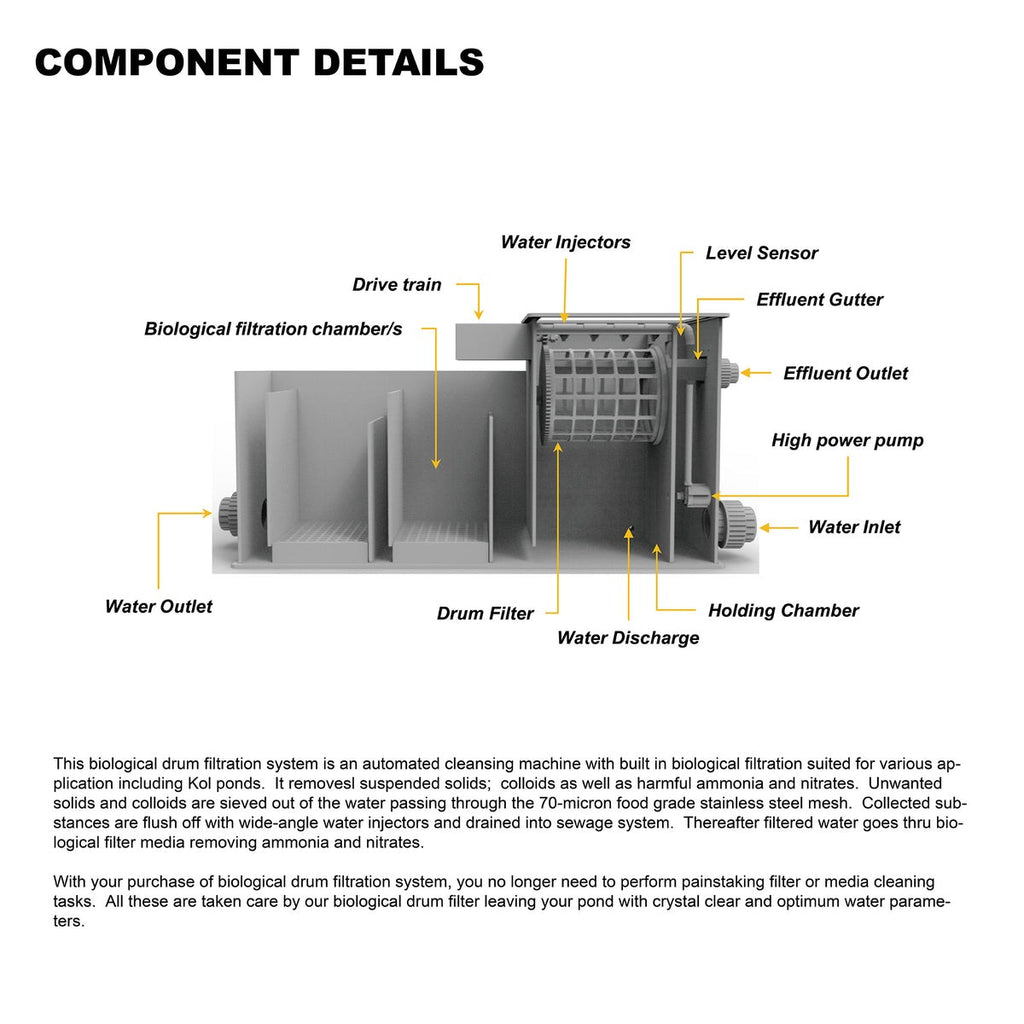 - Product size of 30T+filter bin+UV30W*2 is 2337*568*906mm