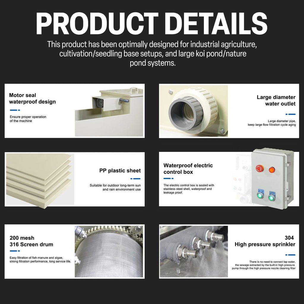 - Inclined bottom design, clean sewage, no blockage, no dead Angle; Filtration is more effective in purifying water.