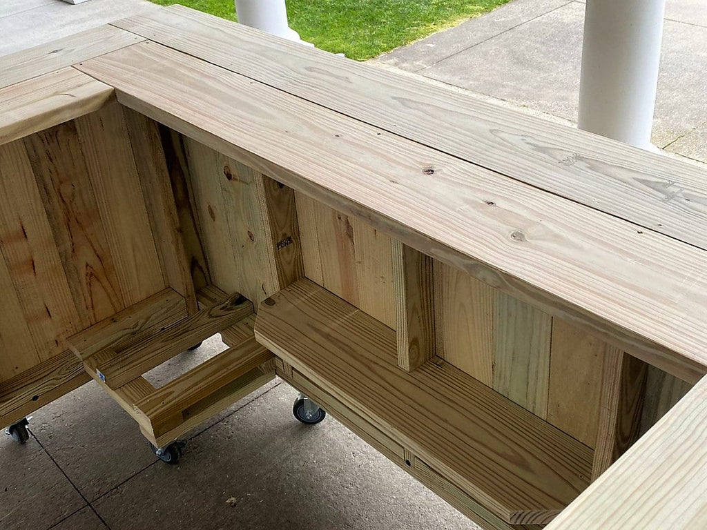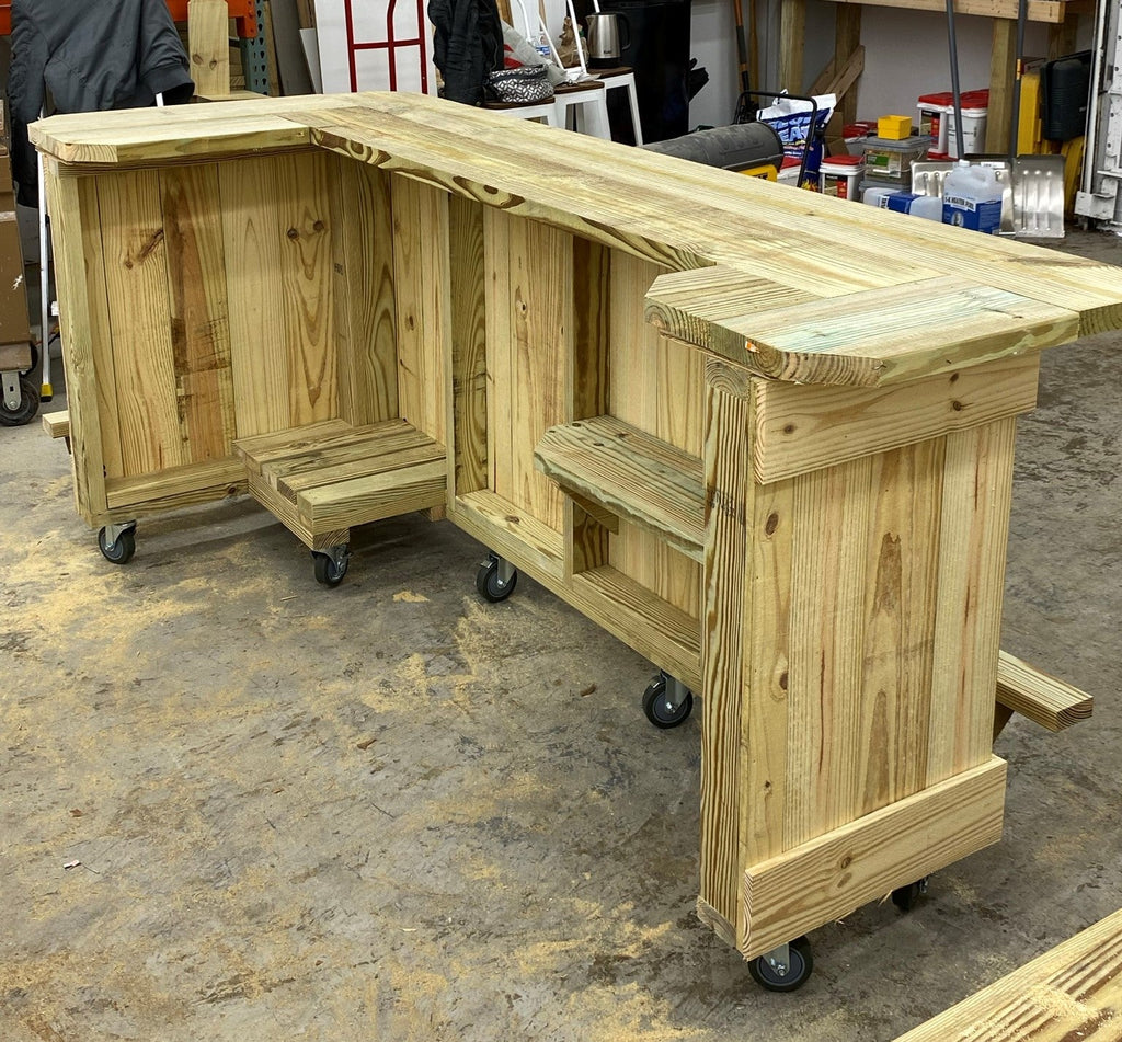 Made from the best of quality pressure treated lumber, this is a sturdy piece of yard furniture that will wow your friends and family when decorated and stocked up ready for your next backyard event.