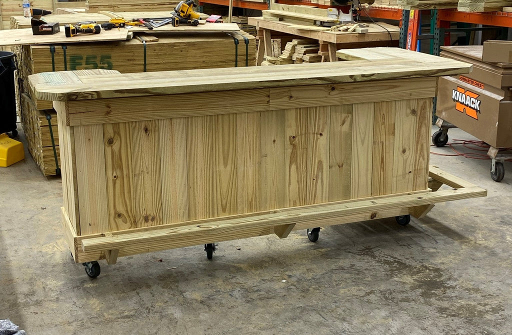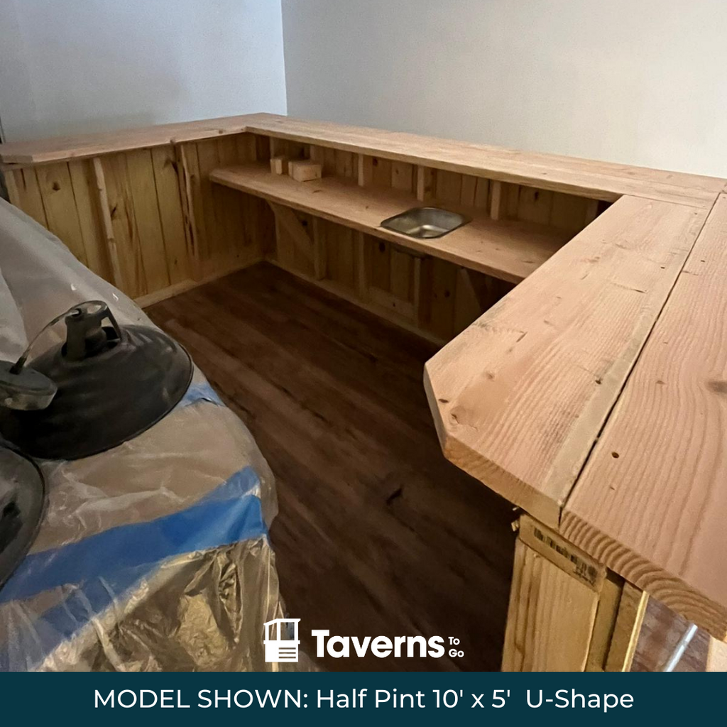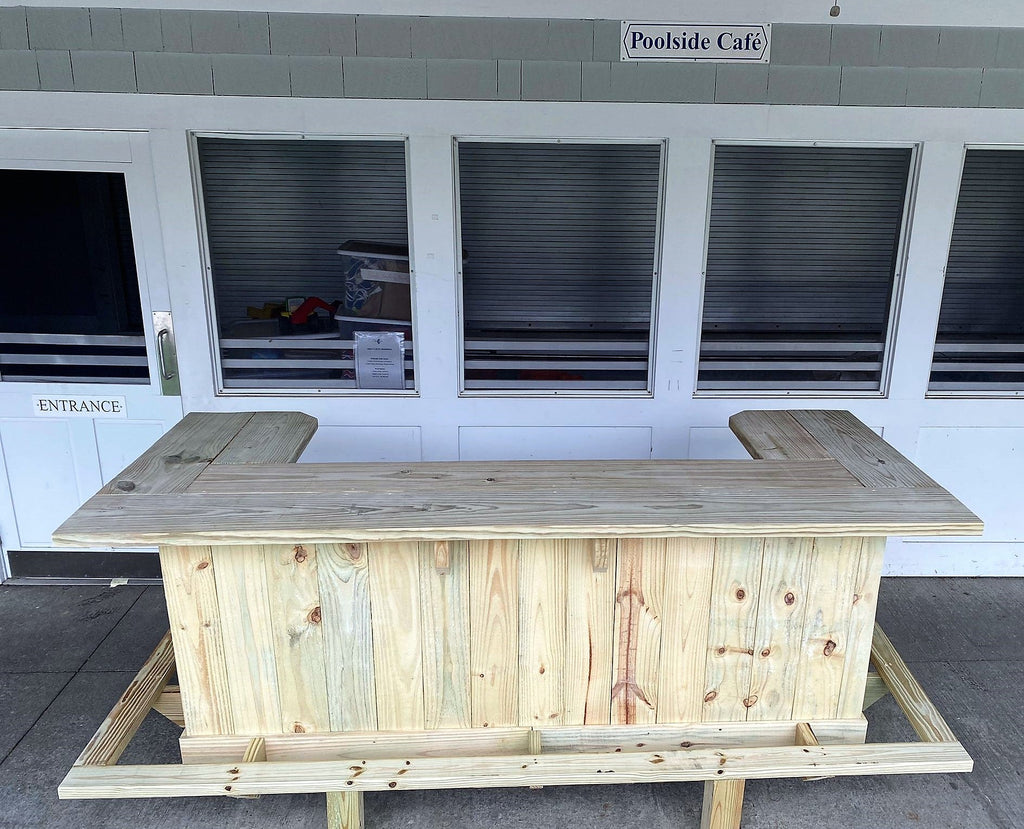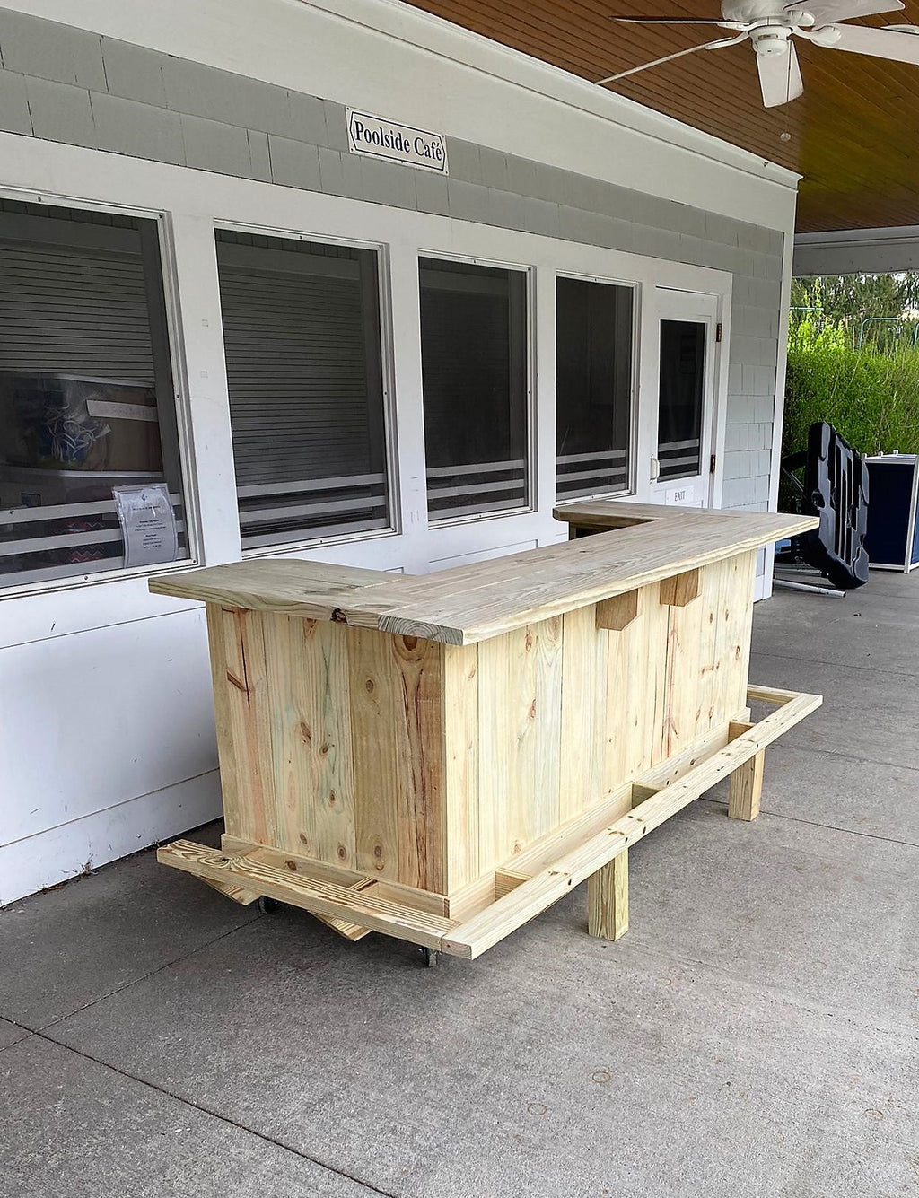 Prefer a more simple bar, with the added benefit of easy moving?... Check out the Half Pint bar; overall size 84" long x 32" wide sitting on lockable casters creating a bar top height of 42".