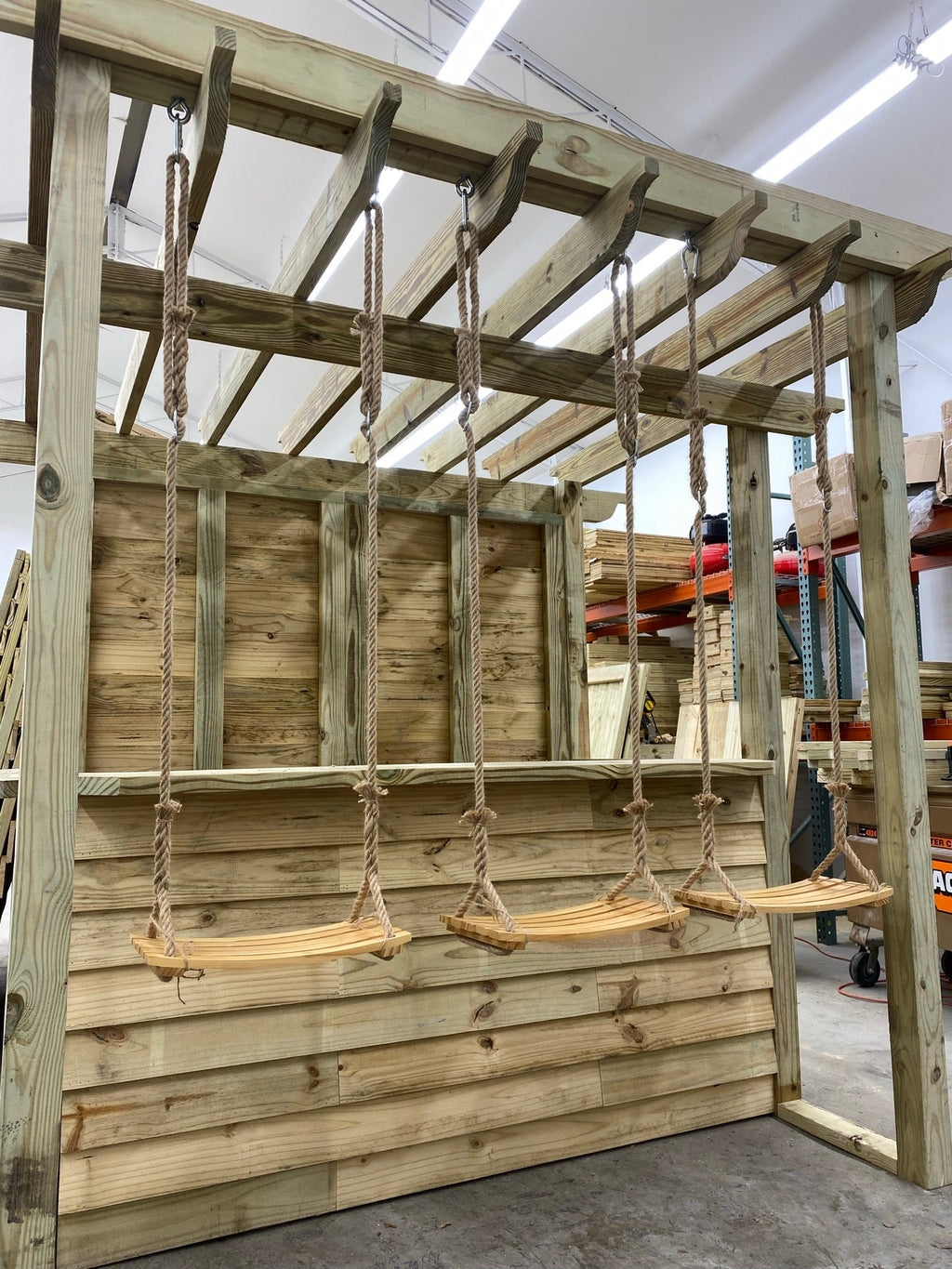 Each swing set is height adjustable and holds a weight of up to 250lbs.