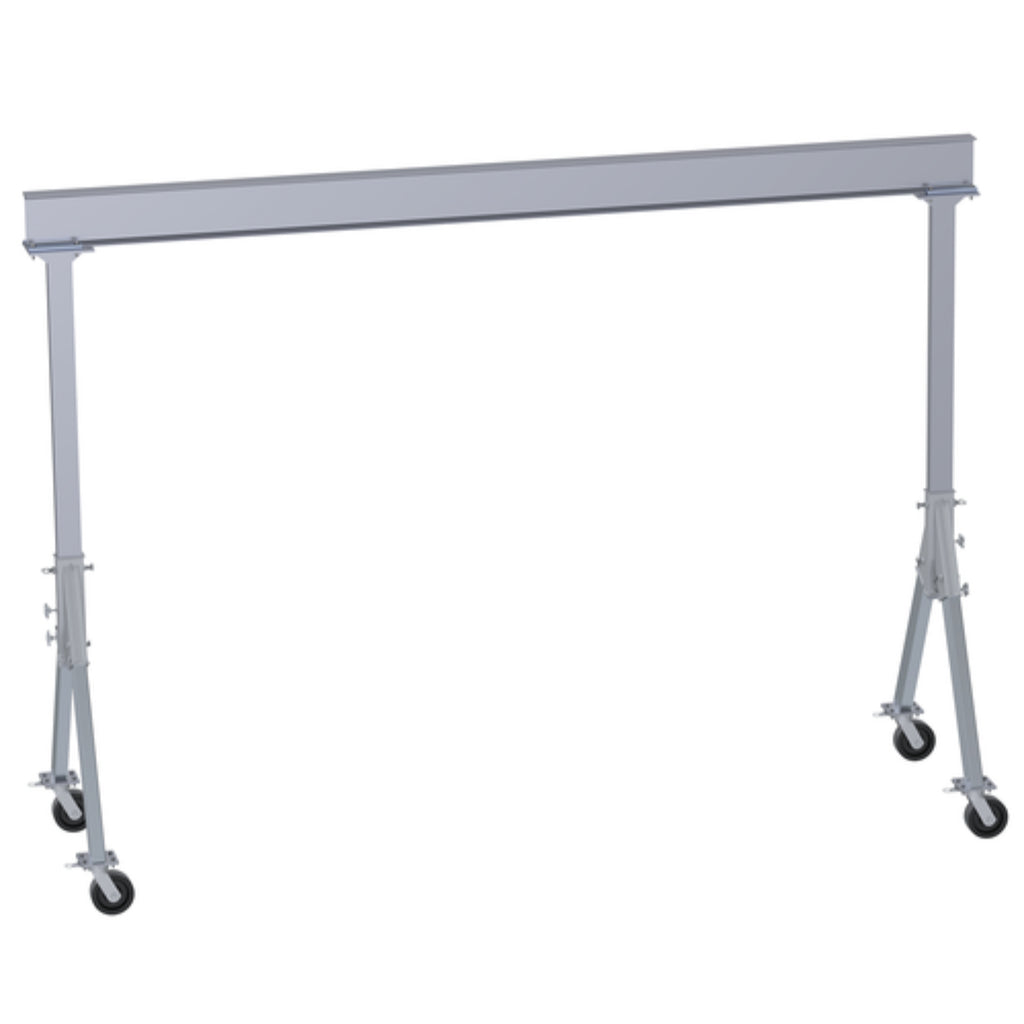 The fixed height Aluminum Gantry cranes are ideal for the manufacturing and maintenance facilities. The aluminum construction is easily manageable and can be simply assembled for immediate use. The unit has a fixed height for working in a permanent or semi-permanent environment. The casters allow the user to move the crane from workstation to workstation and smoothly roll over rough surfaces, while not marring. Do not move units while loaded.