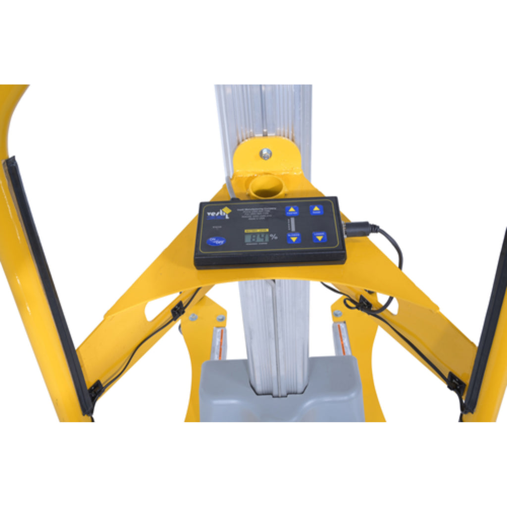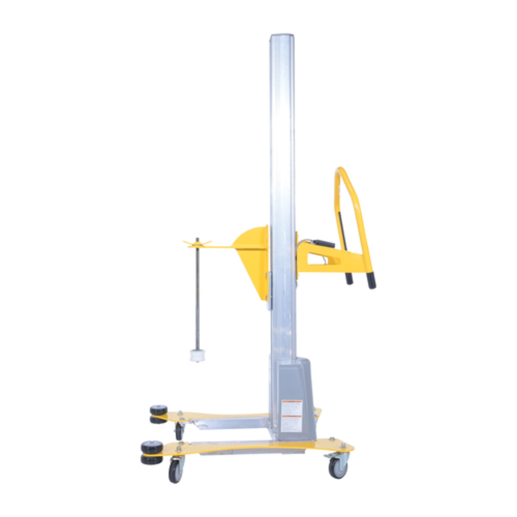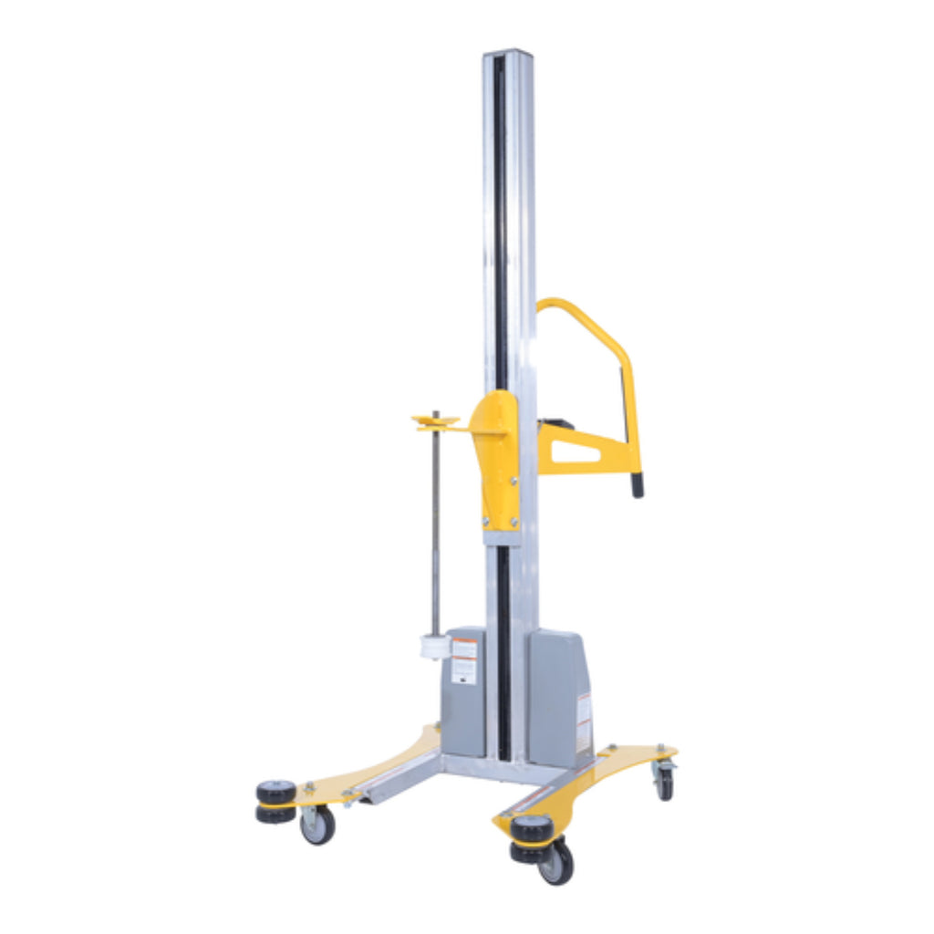 The material pallet stretch wrap machine provides the flexibility to apply stretch wrap film at any work station. This portable walk around stretch wrapper has electronic touch sensitive controls to make packaging tasks easier. Powerful DC battery powered lift moves film wrap up and down as operator simply walks around the packages. Designed to help wrap large and tall packages that could not be wrapped on the standard carousel stretch wrappers. Features an easy reload film system. The upright is constructed of aluminum while the rest is steel construction with powder coat yellow finish. Film not included.