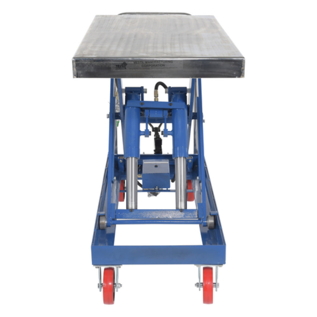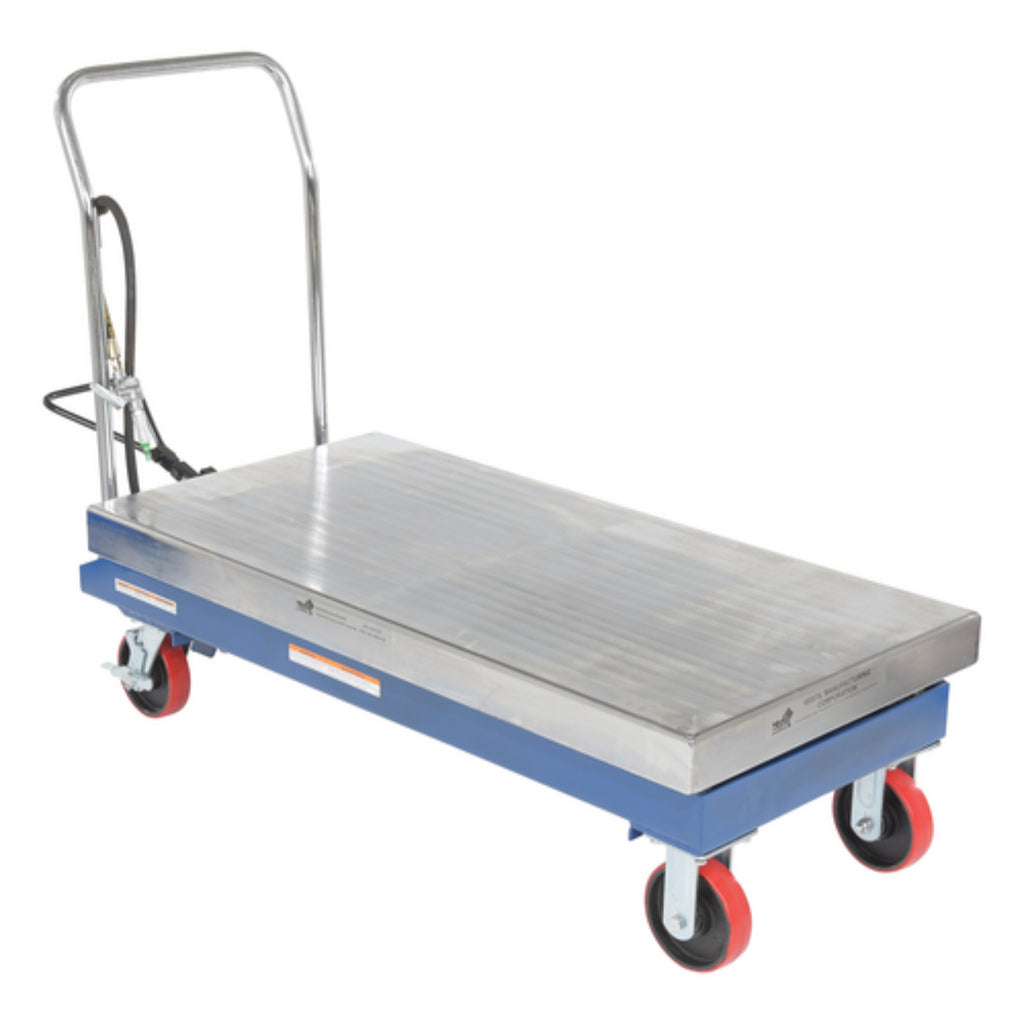 Vestil Carbon Steel Air/Hydraulic Scissor Lift Cart 47-1/4 In. x 24 In. Platform With Poly-On-Poly Casters 2,000 Lb. Capacity Blue/Silver - AIR-2000
