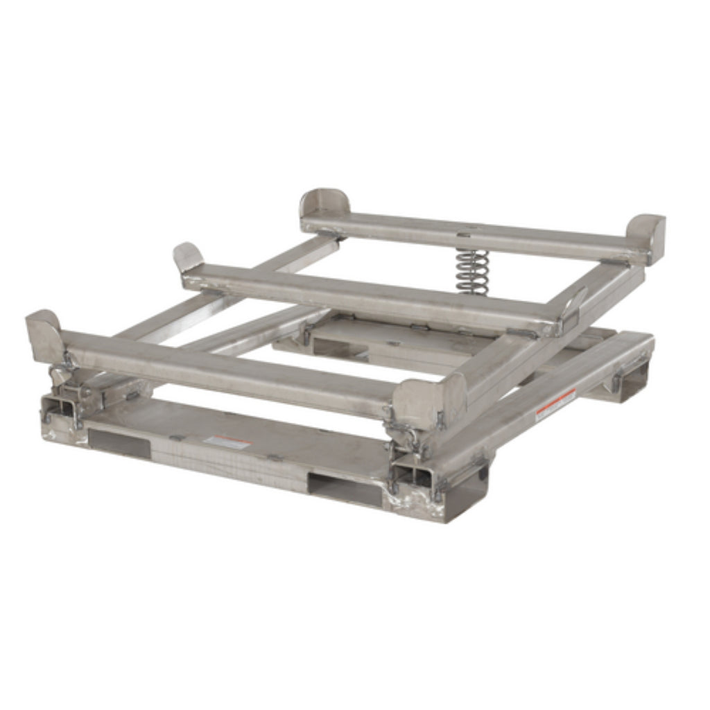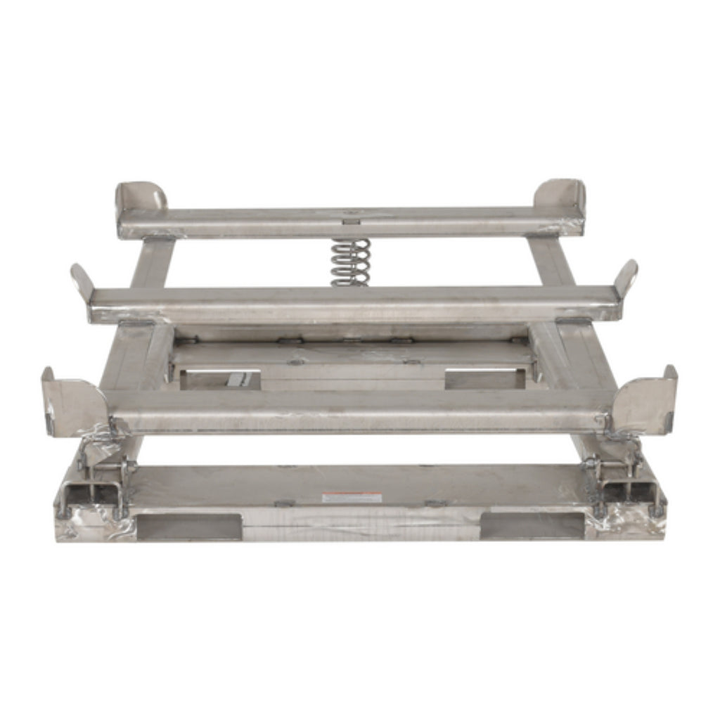 An intermediate bulk container tilt support stand is designed to provide a secure tilting of containers for complete draining. The adjustable height of the stand allows for easy access to valve connections and minimizes user bending and twisting. To use, simply place the container on the stand. When the container is in the secure position, start the draining process. As the fluid flows from the container, the rear of the stand platform will rise up creating an angle for a better release of fluids.