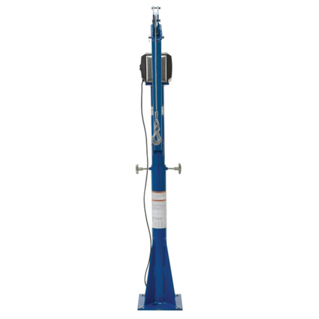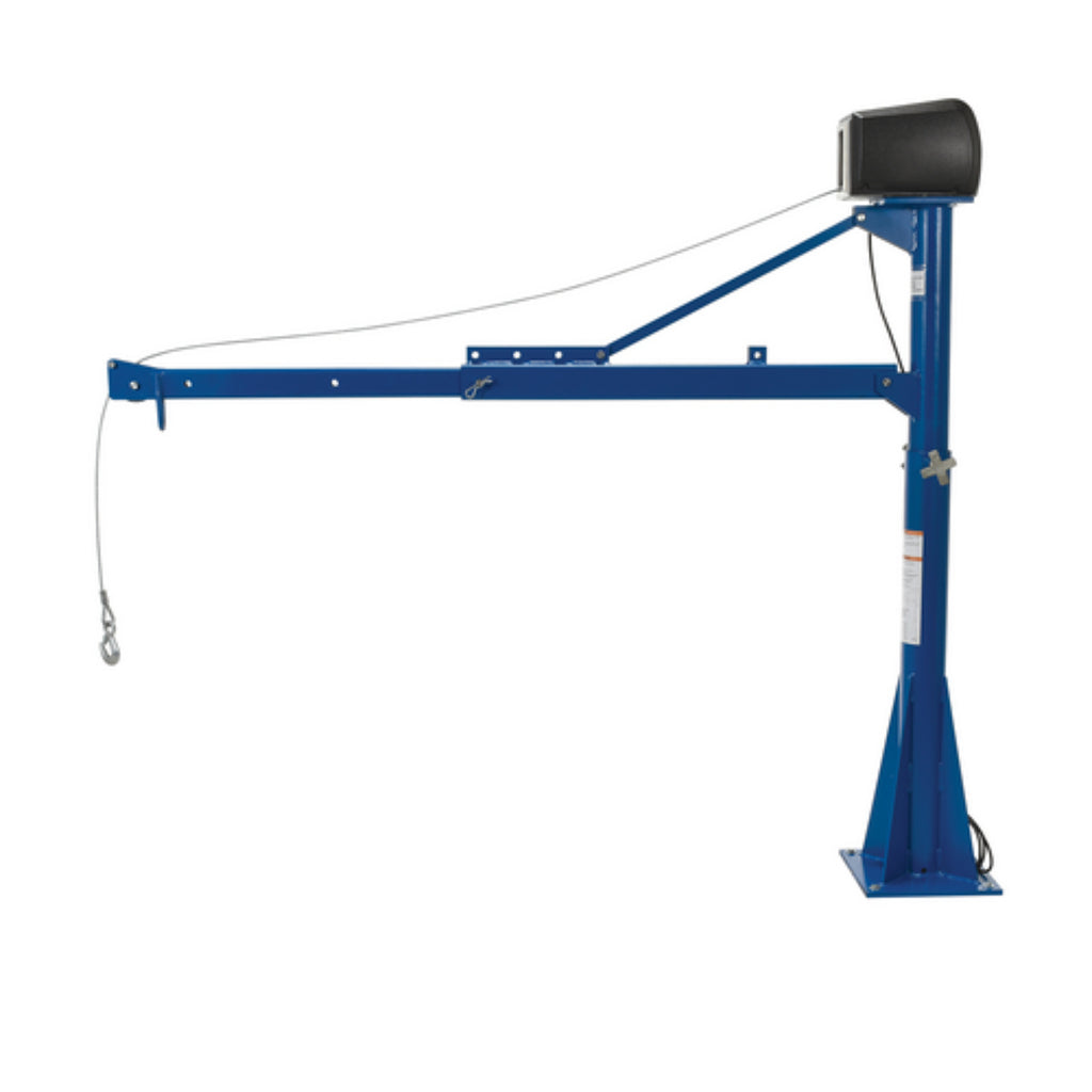 A power lift Jib crane is designed for material handling applications on docks, in warehouses or in truck beds. This lift jib crane is the economical answer to your material handling problems. It offers light-duty, intermittent use. Locking manual rotation. The cable has a swivel snatch block and safety latch. Unit is designed for vertical lifting only. Do not use unit for lifting personnel or overhead lifting.