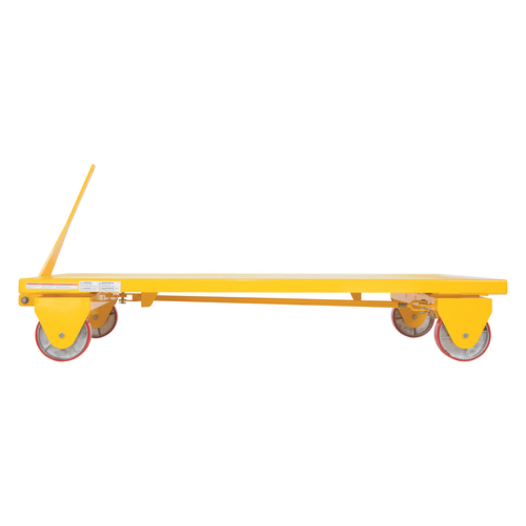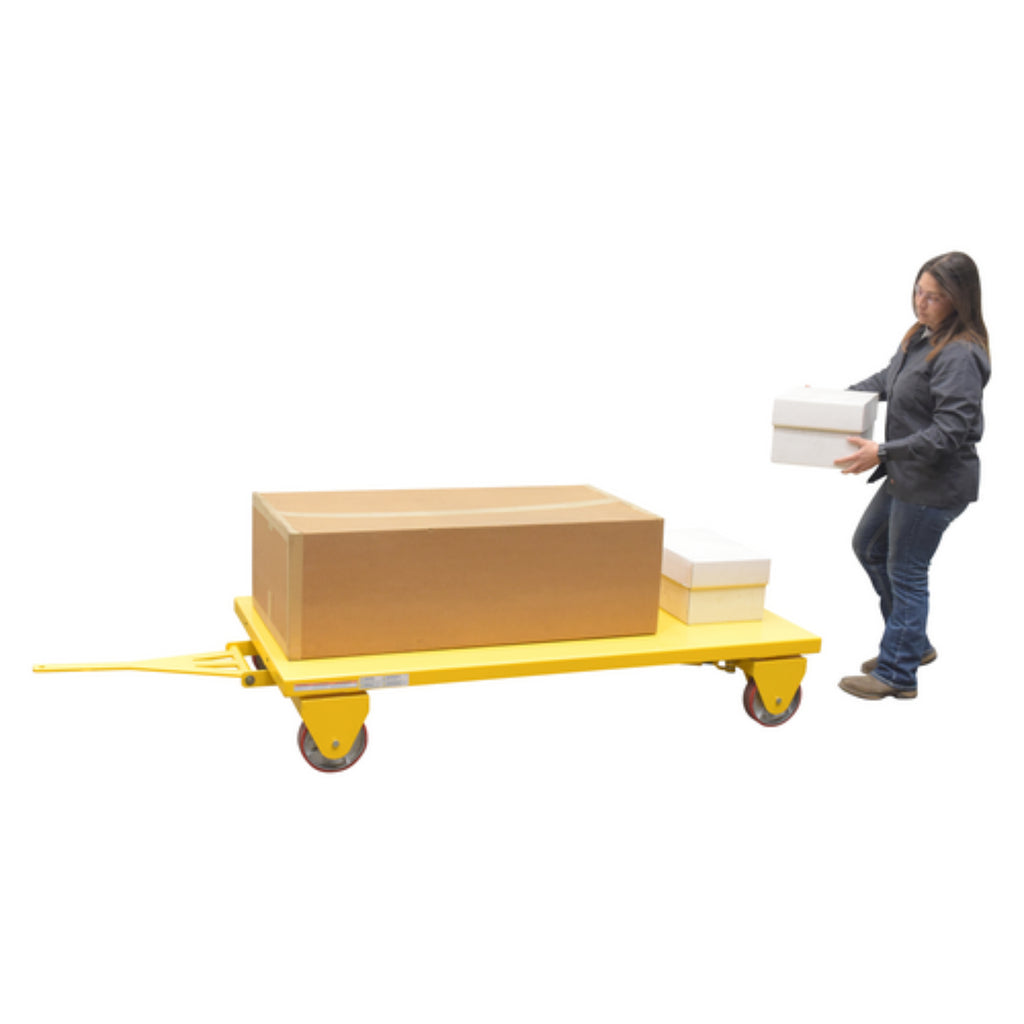 An all-wheel steer truck is a great companion in a variety of settings. The large deck platform, constructed of steel, lets the user transfer items both large and small. An all wheel style is the key to the simple towing and maneuvering around congested areas. Any possible jostling or movement is limited when rolling due to the poly on steel casters. Powder coated for built in added toughness.