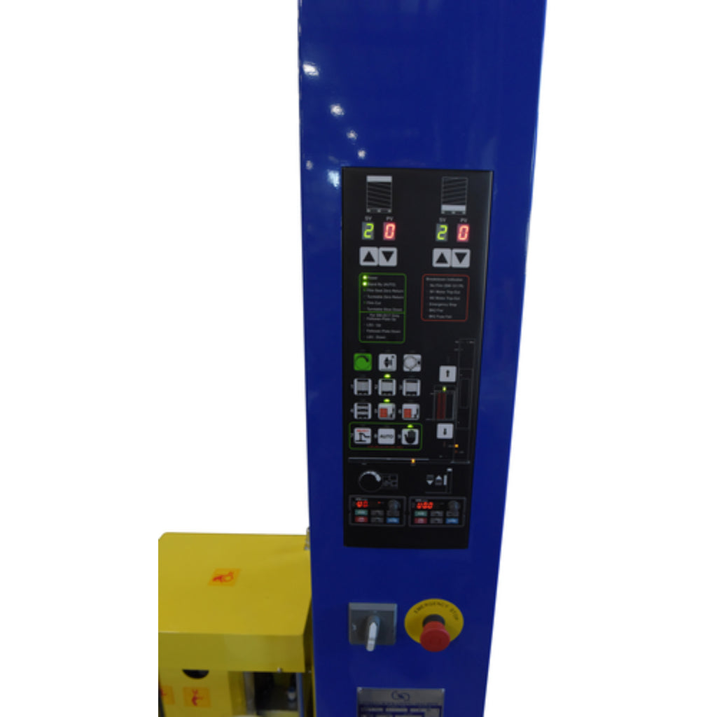 The Medium Duty high performance auto-wrap stretch wrap machine has a user friendly control center that provides workers with efficient control of the wrapping process. The state of the art digital control circuit allows the operator to set the number of pallet rotations and film wrapping patterns, with four (4) standard multifunction wrapping patterns. The operator simply ties off the film wrap on the carousel and presses the start button. When the unit has completed the wrapping process, the operator can simply cut film or use auto brake feature and remove the wrapped pallet. The powered carousel has variable speeds with a soft start and stop feature. Photocell sensors automatically adjust to different pallet heights.