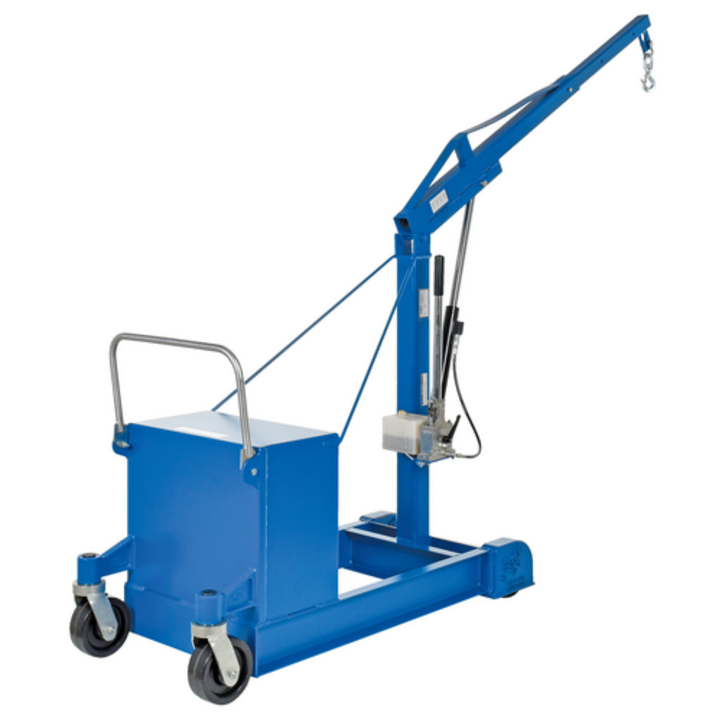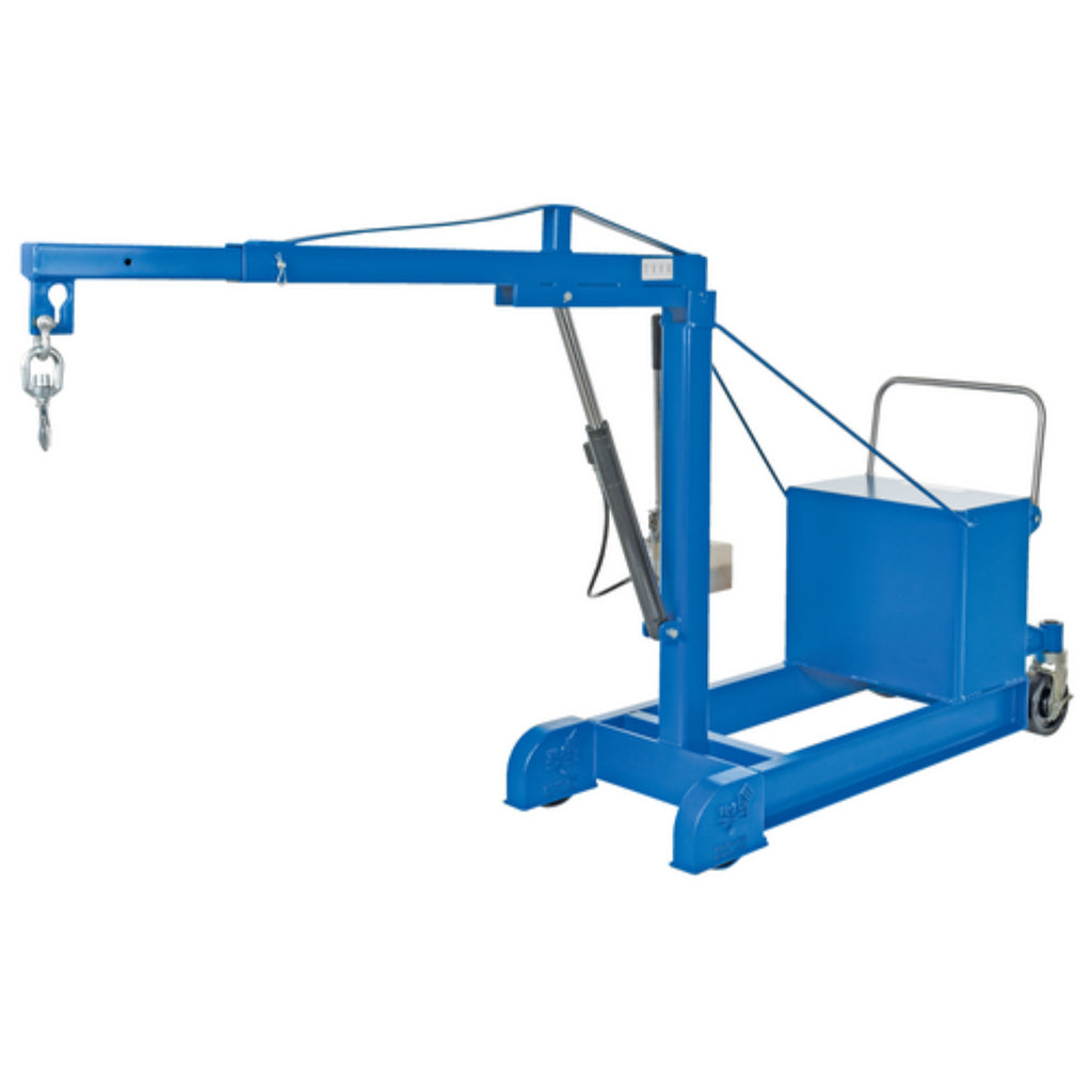 This Counter Balanced floor crane has an adjustable boom to allow for maximum adjustment and versatility to lift a variety of loads. Boom is raised with a manual hydraulic hand pump. Boom also telescopes out for greater reach. The counterbalance design eliminates the need for front legs. This makes the unit easier to maneuver and allows the crane to reach tight, hard to reach areas. Counterbalance included. Welded steel construction.