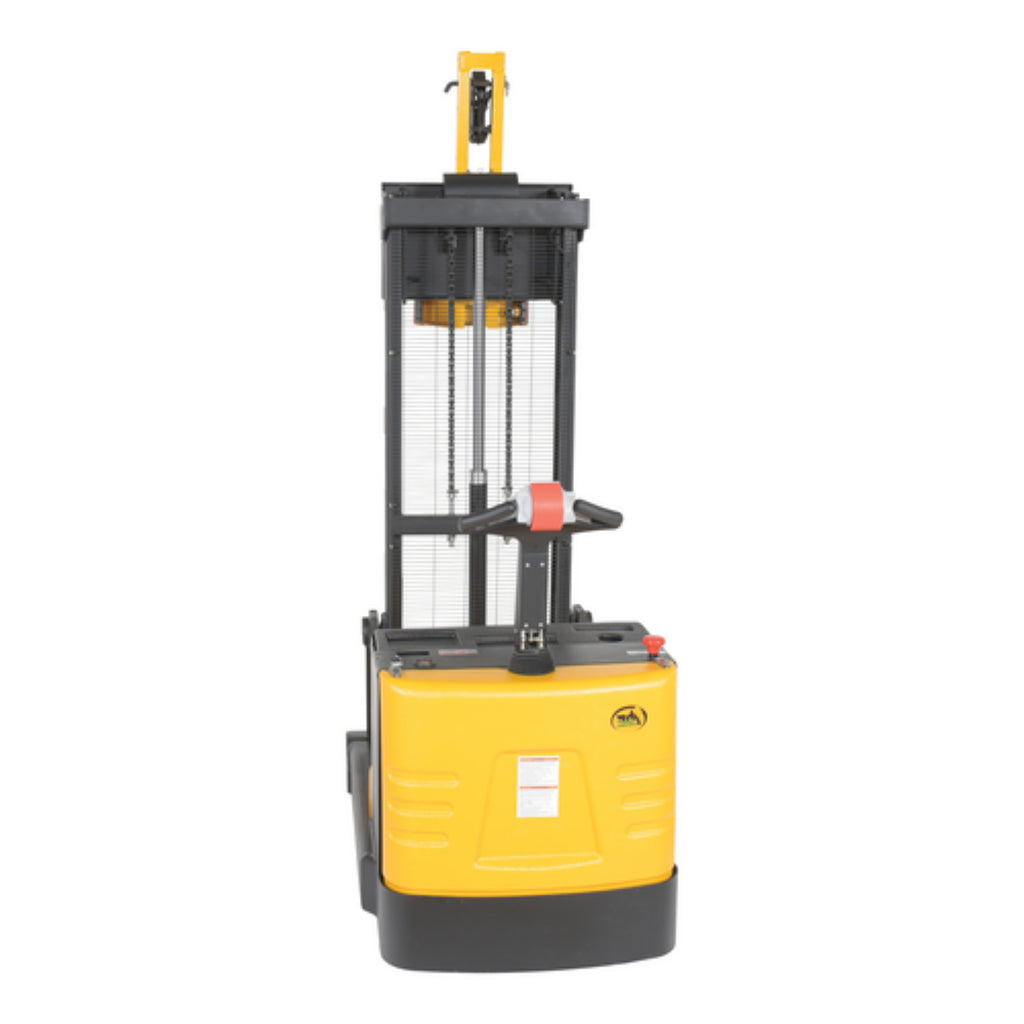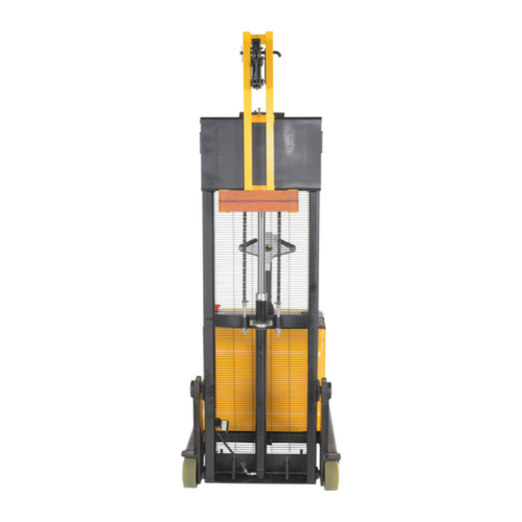 Ideal for confined areas, placing drums in cabinets, loading and unloading drums on/off pallets and scales. Transport 30 and 55 gallon steel, plastic, or fiber drums with ease. Two (2) 12V DC (lead acid batteries) drive and lift motor handles heavy-duty jobs. Ergonomic handle features easy-to-operate throttle with infinite adjustment of forward and reverse speeds, lift/ lower controls, proprietary safety-enhancing emergency reverse function, and horn.