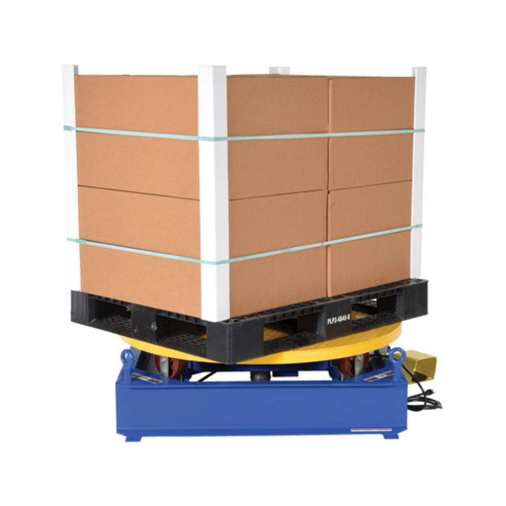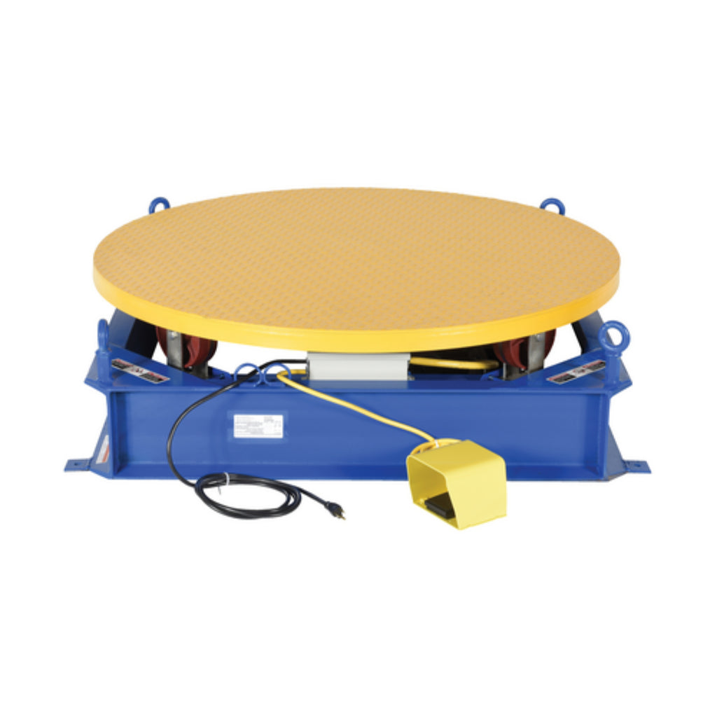 The stand alone powered carousel easily rotates pallets, skids, and other large objects with this rugged powered carousel. This carousel includes a round tread plate turntable that is supported with inverted casters for use as bearings. Also included; turntable, base, power unit, and fixed-speed control. Unit has a heavy-duty steel construction.