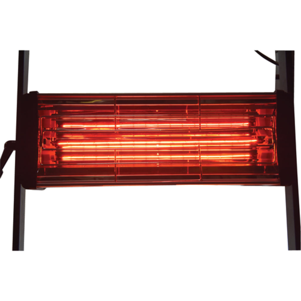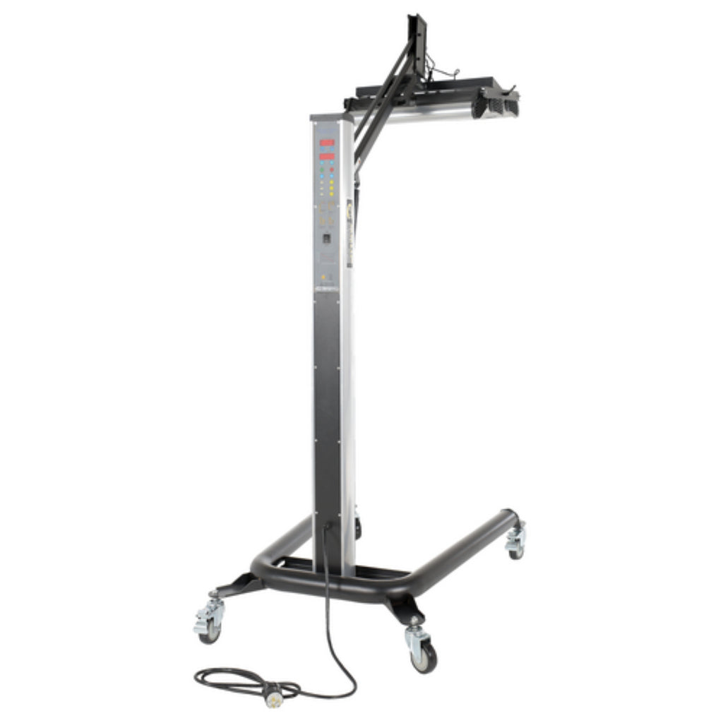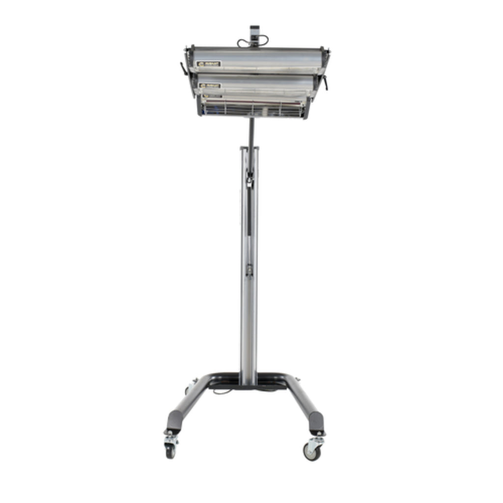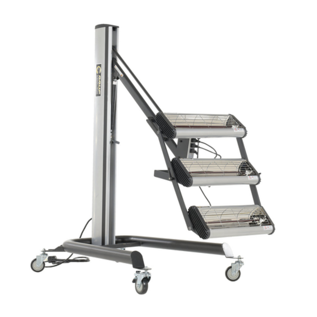 An infrared heater provides beneficial warmth to a variety of industrial areas. A simple to use control panel allows the function and heat settings to be utilized in the best possible way for maximum efficiency. An adjustable heater arm gives the user the ability to maneuver the heating elements into a position that best fits the type of surface that is being heated. Unit includes casters to easily maneuver the unit to and around the work area. A robust structural construction endures work place conditions that are continually changing.