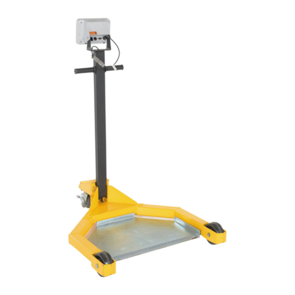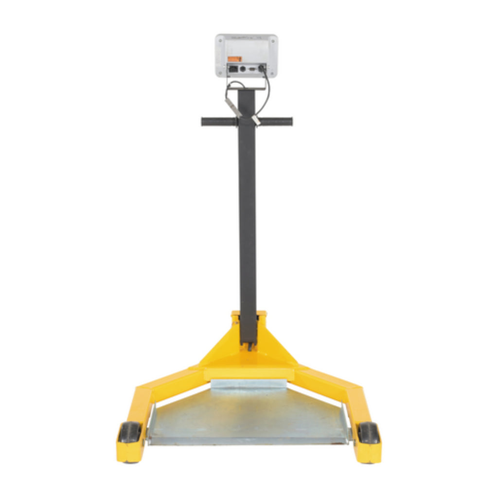 Why bother taking the time to weigh drums at a designated location when you can do it on the go. The low profile drum scale allows the user to weigh the drums while they are being transported. Simply maneuver the drum onto the platform and a read-out of the weight will appear on the screen located near the handle of the dolly. Powder coated black and yellow for increased toughness during daily use. Poly casters are included for simple and a smooth rolling across a variety of surfaces. When not in use, the handle folds down onto the loading platform for a simple storage.
