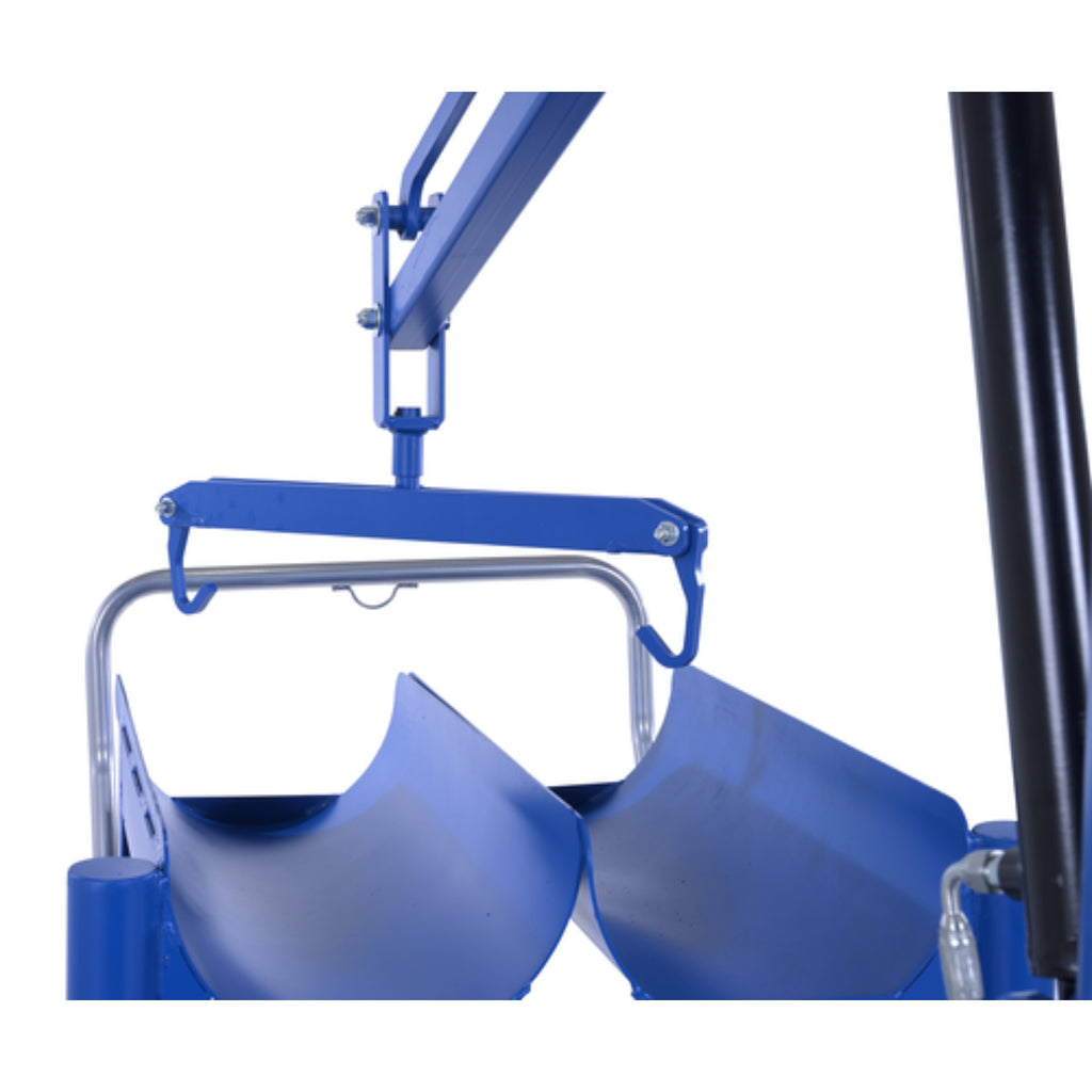 - Attachment at the end of the boom automatically clamps to each end of the cylinder