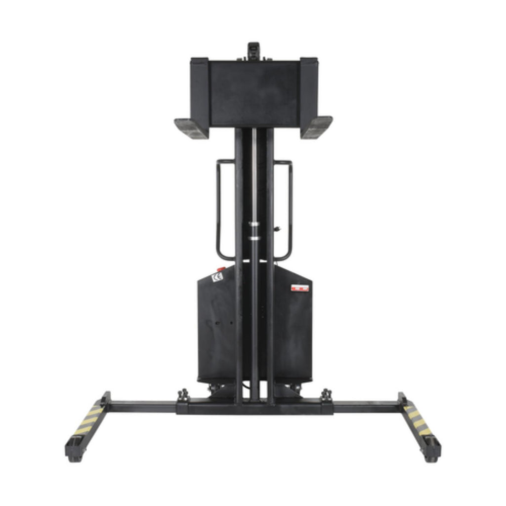 The narrow mast stacker is great for the shipping and manufacturing facilities. The stacker provides a fast efficient solution to loading and unloading products in closely confined areas. The unit features a simple push button design for lifting control, nylon steering and load wheels for excellent maneuverability, and a battery charger and gauge. Models are available with fixed or adjustable forks as well as fixed or adjustable leg supports..