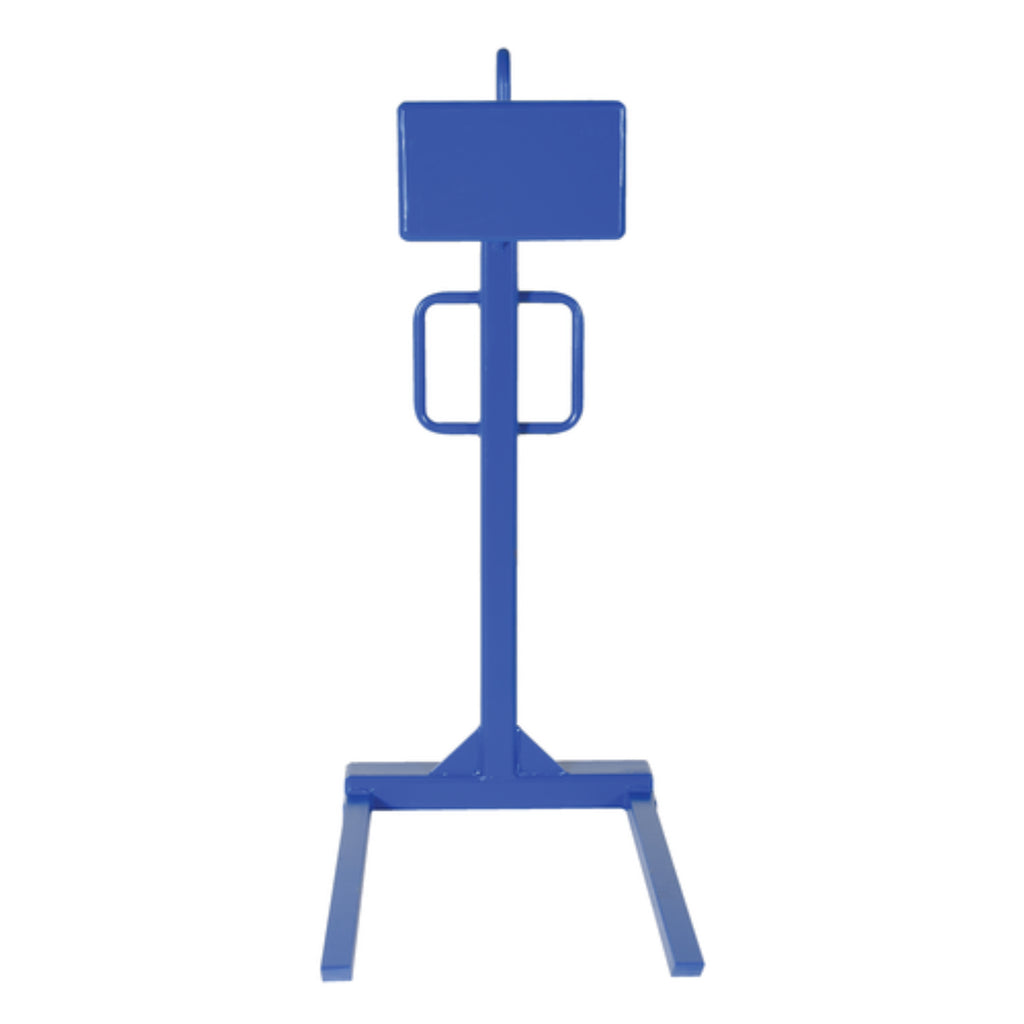 This solid steel pallet lifter contains tapered forks to allow easy access under pallets. Main support contains handles to allow personnel to position the unit. Large square head serves as a counterweight to keep the unit level without a load.