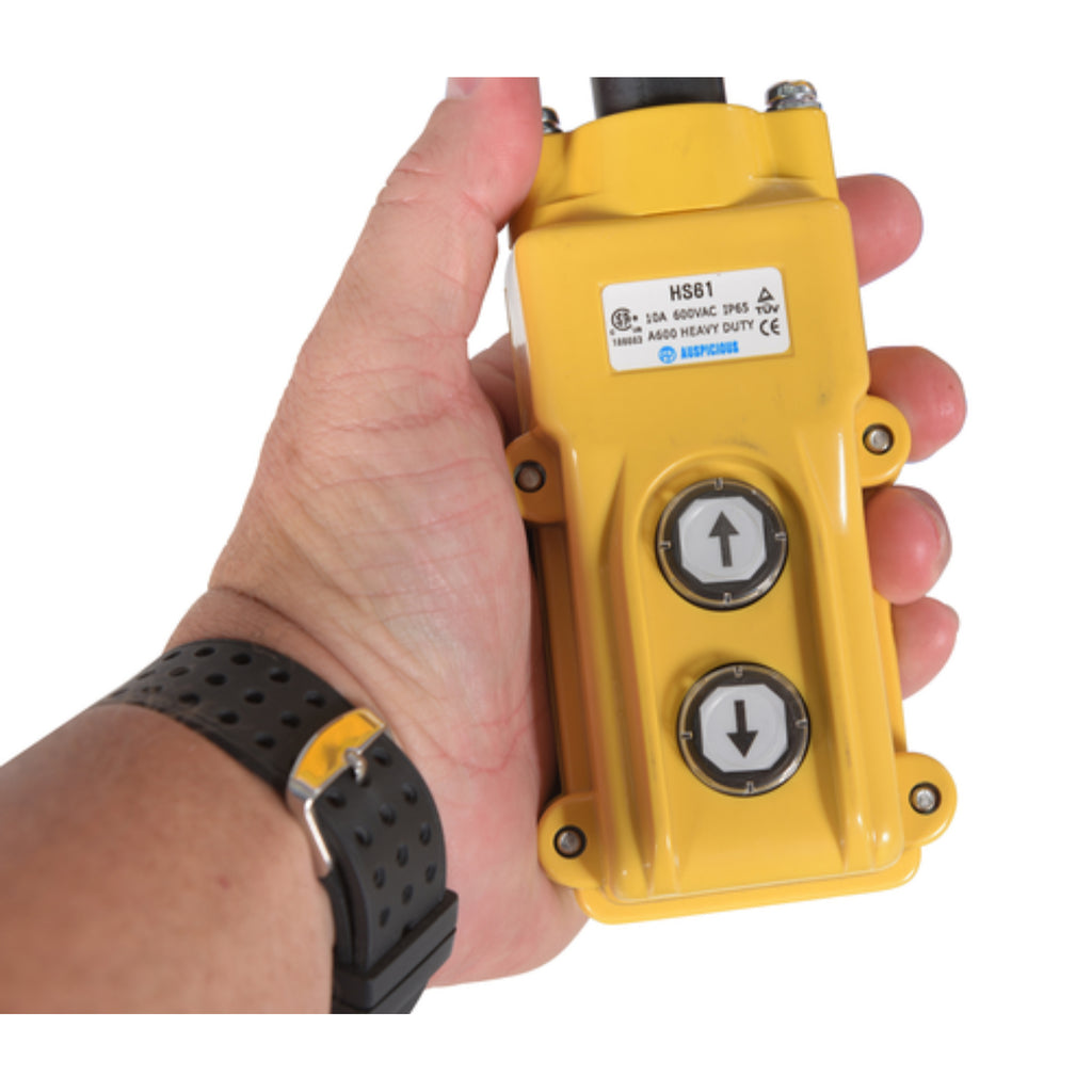 The Hydraulic drum dumper is what you need to dump heavy drums. Works with plastic, steel, and fiber drums. Dumper has a solid steel chute. This portable unit has casters with floor lock screws. All steel construction. Upper travel limit switch, emergency brass safety velocity fuse in cylinder, and vertical adjustment drum restraints are standard. Dumper is operated with a hand held control on a coil cord standard.
