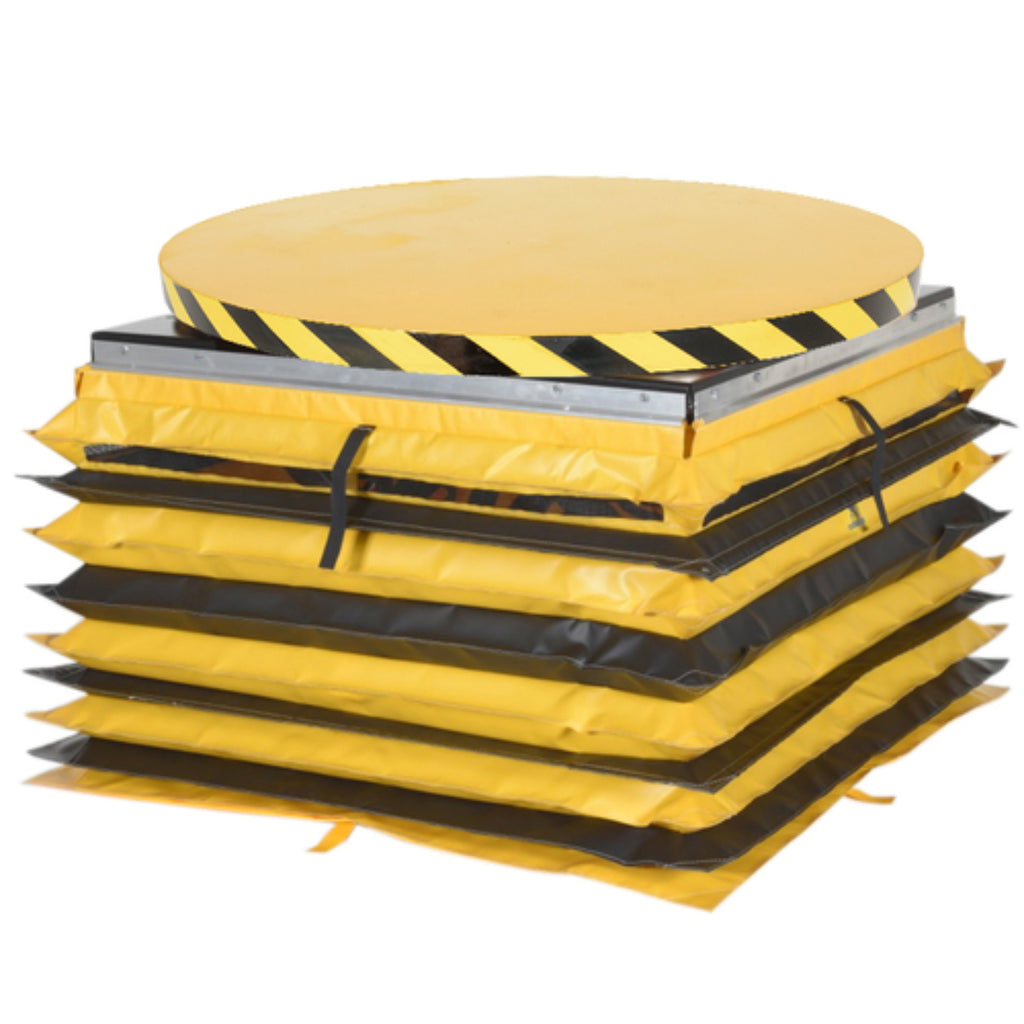 Manual rotation and powered lift/lower turntable is ideal for commercial and industrial applications. This unit allows the user to transfer products from work space to work space, while holding an ergonomically friendly position. Compact, economical and easy to use. The 43-5/8" diameter top can be rotated 360 degrees for improved packaging and handling capabilities. Heavy duty/high quality steel construction. Power supply is 115V, 1-phase. Durable powder coat finish.
