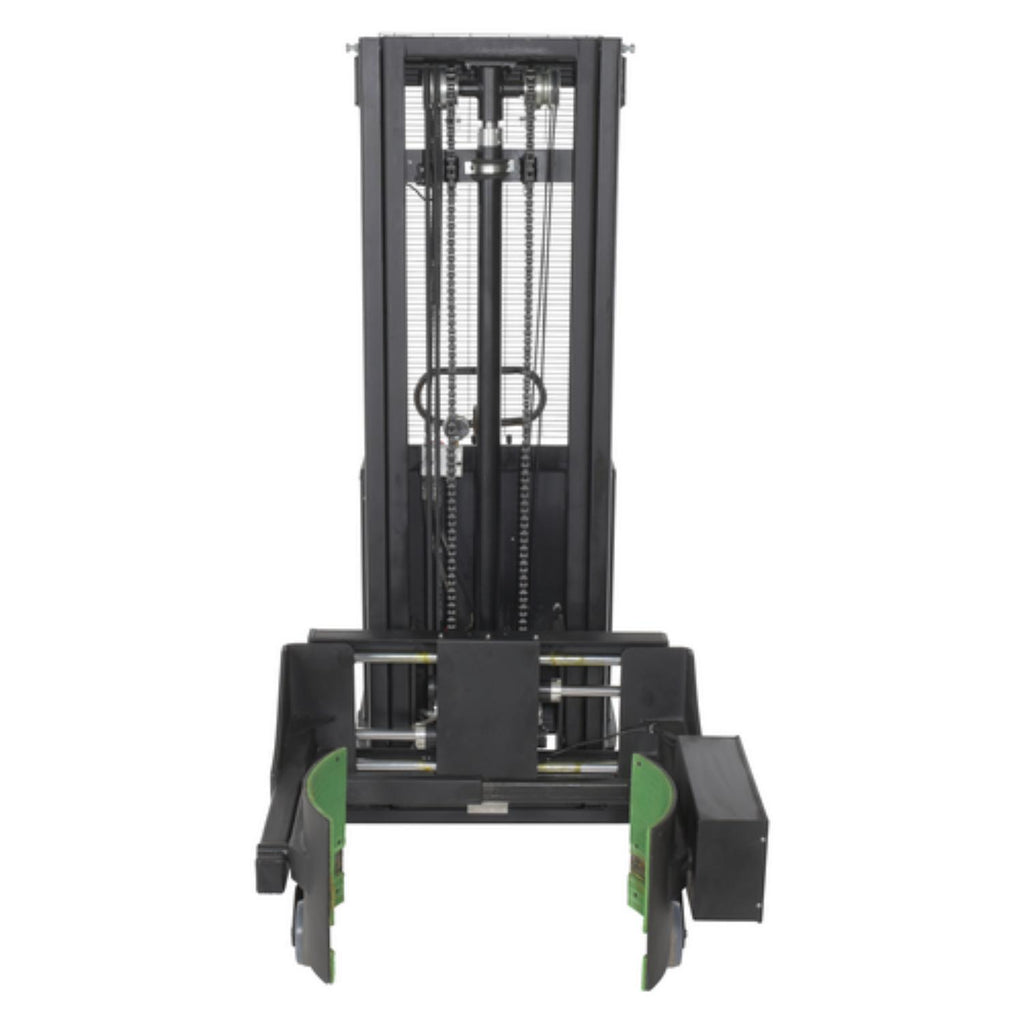 A semi electric drum gripper and rotator provides a simple way of transferring and maneuvering drums. With a walk behind style, the two handle design allows the user prompt control when pushing the unit into position. Once in place, the gripping and rotating mechanisms are battery operated for consistent strength during the loading and unloading process. Multiple drum sizes are accepted for use in a variety of settings. The powder coat finish over a steel construction adds a durable baked-in toughness.