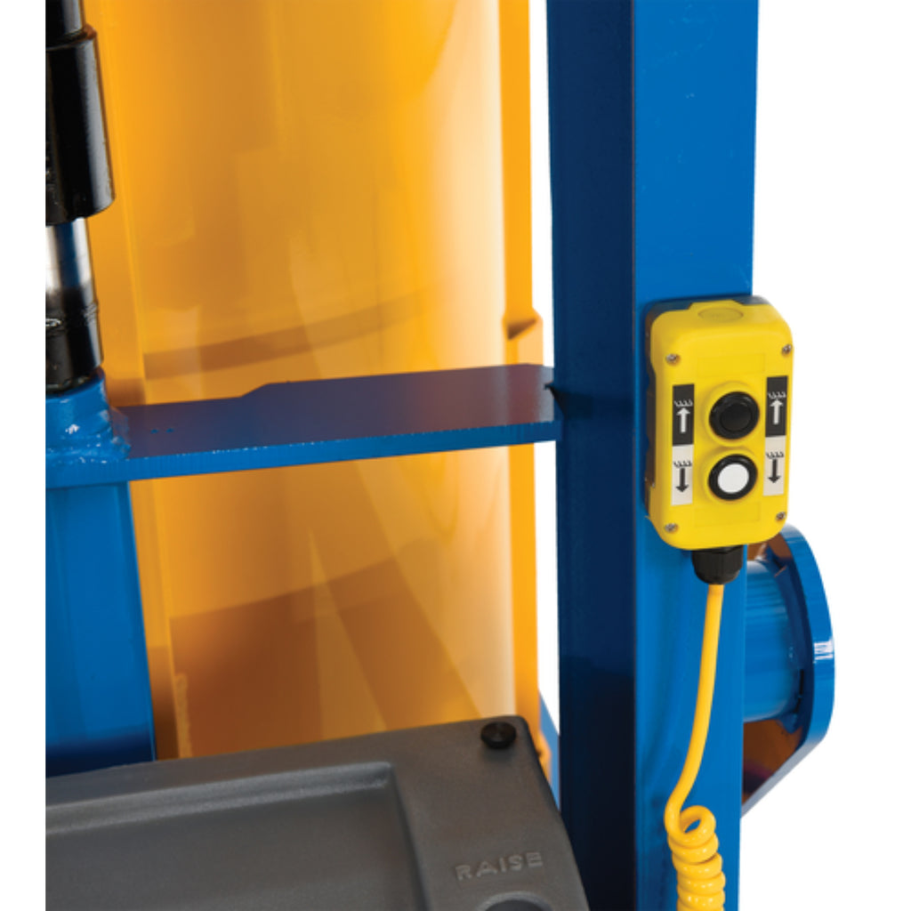 - Internal pre-wired heavy-duty electric motor conveniently dumps drums
