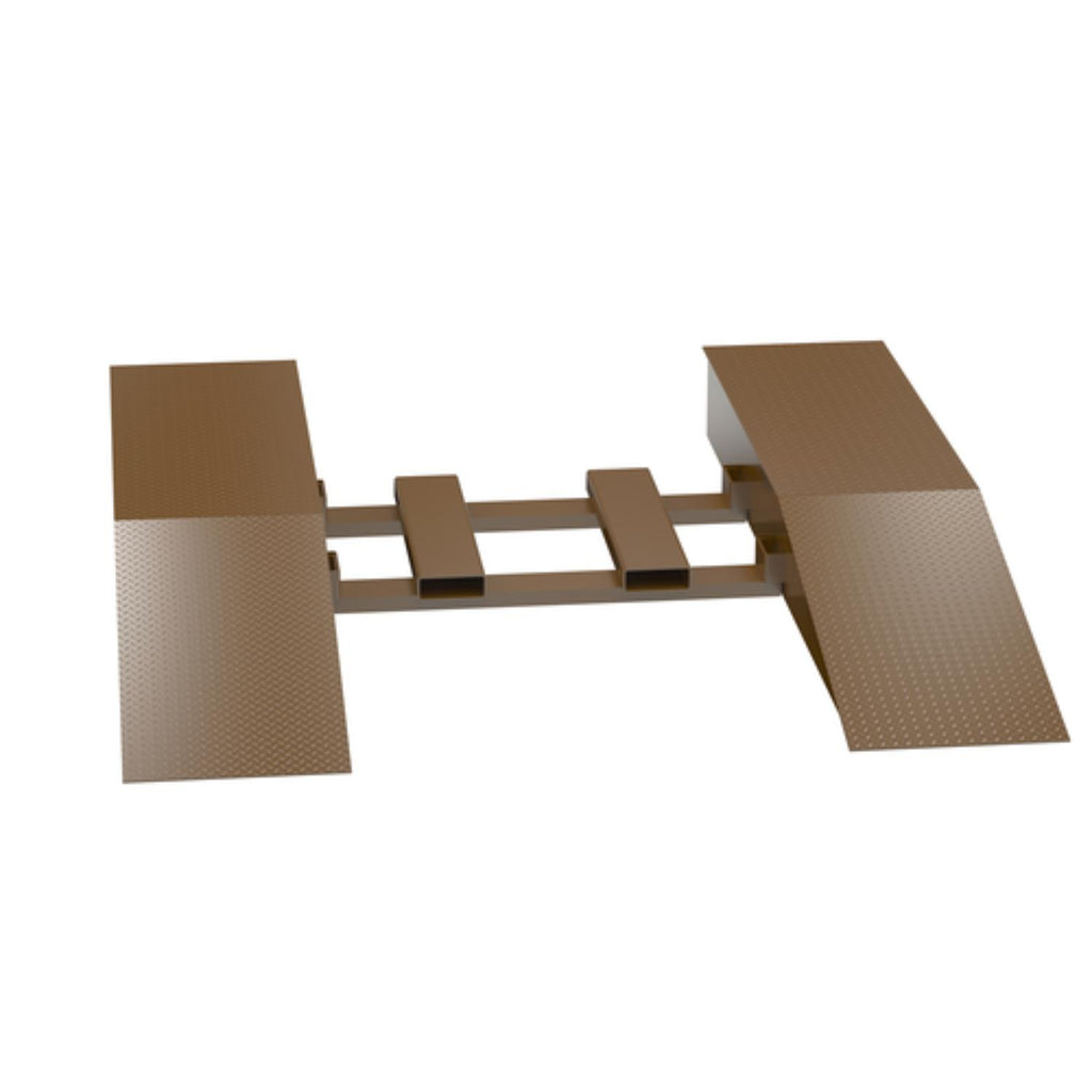 The steel wheel riser is equipped with fork slots for ease in fork truck transporting. Wheel risers are designed to raise the trailer for loading and unloading to facilitate compliance with OSHA/ANSI B56.1 part 3 sec 7 requirements for maximum grade of ascending or descending loaded fork trucks. Made of heavy-duty welded steel with a uniform capacity per pair is 40,000 lbs. ramps may be stacked for compact storage when not in use.