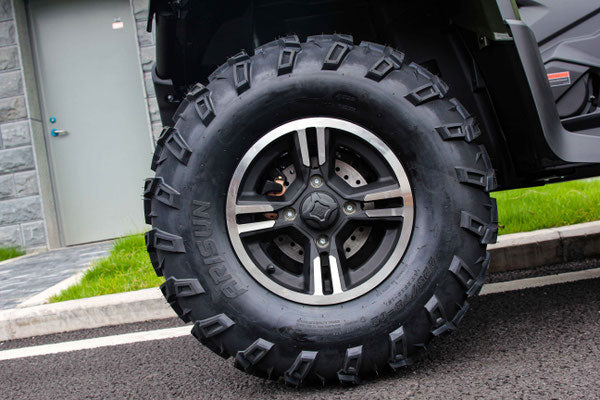The ATV's suspension system features Dual A-arms with 190mm travel in the front and 230mm in the rear, coupled with oil and gas mixed shock absorbers, ensuring superior shock absorption and stability. With a ground clearance of 280mm and a top speed of 100 km/h, the XWOLF 700 is built to conquer challenging landscapes. Additional features include 210mm disc brakes, alloy wheels, a full LCD multi-functional digital meter with a color display, a 3000 lbs winch, and front and rear racks with covers, making it a comprehensive package for any off-road adventure.